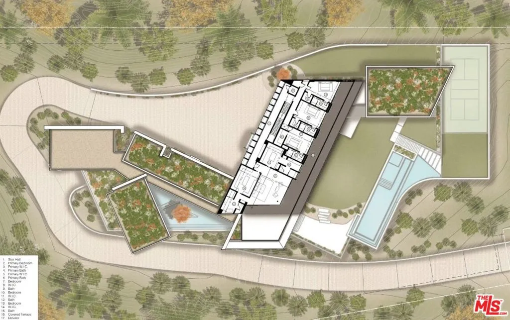 A rare opportunity to develop a world-class estate on 6.2 acres in Pacific Palisades, offering sweeping views of the Pacific Ocean and Santa Monica Mountains. With approximately 1.5 acres of buildable area and a recent soils approval from the City of Los Angeles, this is one of the largest and most significant land offerings in the area. The sale includes preliminary civil and structural plans, as well as a fully realized schematic design by renowned architecture firm Vantage Design Group for a 17,500 SF modern residence. The proposed design is a composition of interlocking volumes arranged around a multi-level courtyard, spanning three levels each with its own material palette and unique perspective. The main living and dining areas are oriented toward the ocean, while guest and spa wings rotate outward to embrace canyon and mountain views. The primary suite and family spaces are positioned to capture sweeping vistas along the coastline. A private, serpentine drive gradually reveals the home, culminating in a dramatic motor court that introduces the residence as a study in dynamic geometries, monumental scale, and refined material contrasts. Interiors are envisioned in rough-hewn limestone, plaster, and timber, and open on all sides to the surrounding landscape. The partially buried lower level houses a free-flowing garage and entertainment zone, illuminated by a dramatic prismatic courtyard. Outdoor amenities in the schematic design include a 6,000 SF lawn, two infinity edge pools, terraced grassy area, and a full-size sports court. The design also includes a home theater, spa, two elevators, multiple entertaining spaces, and garage parking for nine vehicles. A legacy project in one of L.A.'s most coveted neighborhoods, ready for the next visionary to bring it to life.