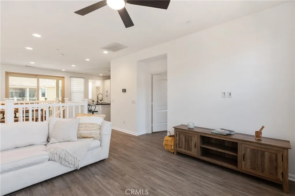 Welcome to 48 Jaripol Circle, located in the award-winning community of Rancho Mission Viejo and the charming Sage neighborhood. Recently refreshed with new paint, plush carpet, and modern fixtures, this home offers a warm yet contemporary atmosphere designed for both comfort and style. Step through the inviting front porch into a light-filled foyer, leading to a versatile bedroom with an en-suite bath—perfect for guests, multigenerational living, or a private home office. This level also features a discreet stacked laundry area, generous hallway storage, and direct access to the oversized two-car garage, with plenty of room for storage, a gym, or a workbench. Upstairs, soaring ceilings and abundant natural light define the open-concept living area. At the heart of the home, the gourmet kitchen showcases stainless steel appliances, sleek countertops, a spacious island with seating, and abundant cabinetry. The dining area and great room flow seamlessly to a covered balcony, ideal for outdoor dining or quiet evenings. The upper-level primary suite provides a private retreat with dual sinks, quartz countertops, and a walk-in shower. Blending elegance with practicality, this home is designed for both style and everyday efficiency. As a Rancho Mission Viejo resident, you’ll enjoy exclusive access to world-class amenities: resort-style pools and spas, fitness centers, sports courts, scenic trails, community farms, playgrounds, gardens, dog parks, and unique gathering spots like a coffee shop, arcade, and fire pits. Nearby retail and easy access to Los Patrones Parkway and the 241 Toll Road make everyday living effortless. 48 Jaripol Circle is a seamless blend of design, flexibility, and the vibrant Southern California lifestyle.