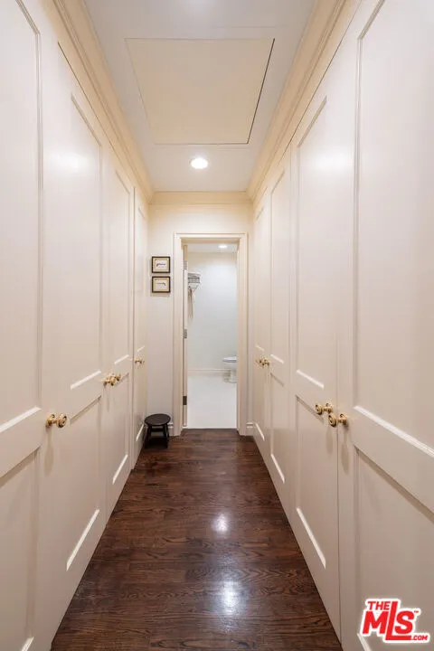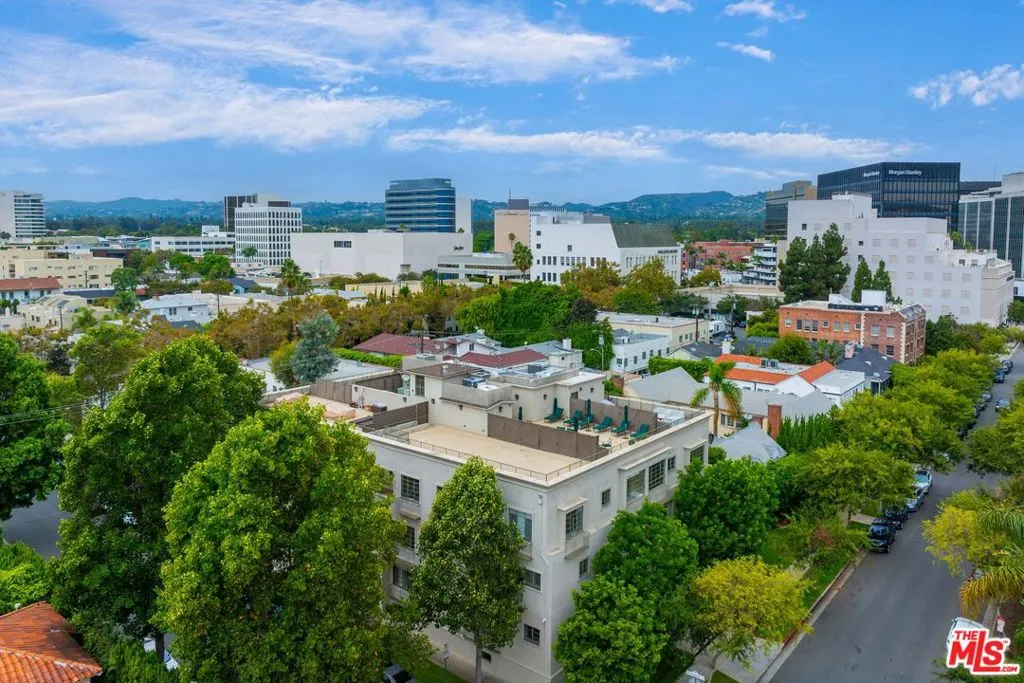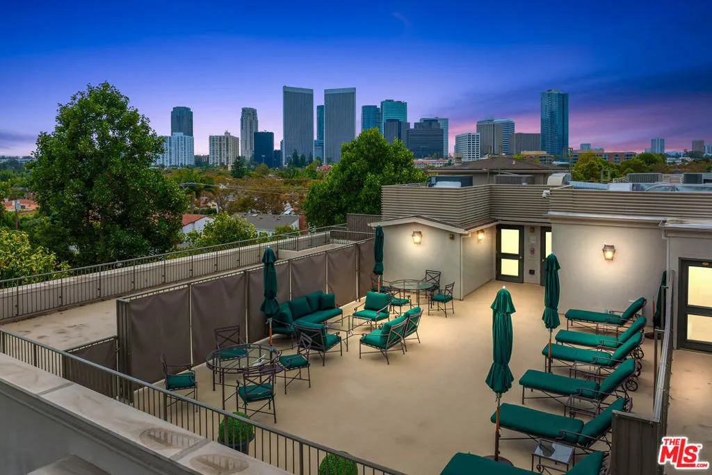 Manhattan-Style Pied--Terre sophisticated and upscale, this remodeled residence is located just steps from world-class shopping and dining, moments from Saks Fifth Avenue, the Beverly Wilshire Hotel, and Rodeo Drive. Designed to perfection by acclaimed interior designer Waldo Fernandez and architect Peter Choate, the stylish condo features a gourmet galley kitchen with a Viking six-burner stove, bluestone marble countertops, stainless steel appliances, and rich solid oak hardwood floors. High ceilings with crown molding, a luxurious marble bath, and French doors with custom plantation shutters create an elegant, inviting atmosphere. Additional highlights include a private terrace, Bosch washer/dryer, central heat & air, and two tandem parking spaces with locked storage in a secure gated garage. The building offers a rooftop deck with sweeping Century City and Beverly Hills views, concierge-level security with cameras, and elevator access.