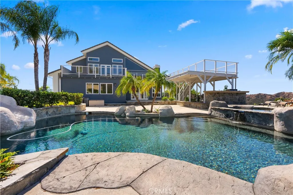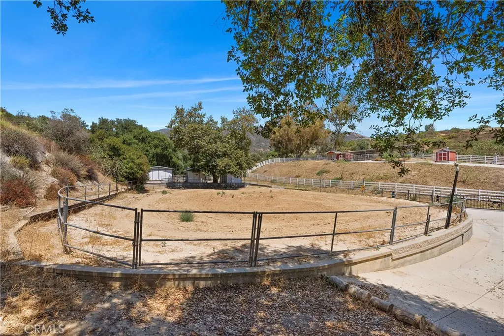 HUGE Price Improvement!! Introducing a remarkable horse property, just 2.5 miles from shopping, dining, and schools in Rancho Santa Margarita. This stunning residence boasts panoramic 360-degree views and includes private stables featuring 9 stalls and a horse arena. The horse facility has installed professional footing, barn facility, and extra parking, The open floor plan is flooded with natural light, complemented by a kitchen equipped with granite countertops, stainless appliances, and a walk-in pantry, seamlessly connecting to the dining and living areas with a custom fireplace and built-in shelving. The main floor also features a separate guest suite and bath plus and an office with built-in cabinetry. In addition, a specially designed media room enhances entertainment options. Upstairs, the luxurious master suite showcases a remodeled bath with a soaking tub and two walk-in closets plus 3 Aditional bedrooms and a spacious laundry room. Enjoy breathtaking views from the master and secondary bedroom balconies. The expansive resort-style backyard, ideal for relaxation and recreation, includes a meandering pool, spa, tropical landscaping, 12 fruit trees, putting green, and synthetic grass. A large fenced grass area is also available on the property for gated RV access. Notable features include seller-owned solar panels, Generac whole house generator, new HVAC and a Quick Tesla Charger. Spanning approximately 2.5 acres, the lower area is dedicated to equestrian activities with a professionally designed horse arena and additional stable facilities, including ample parking. This property offers a perfect blend of country tranquility while remaining conveniently close to urban amenities.