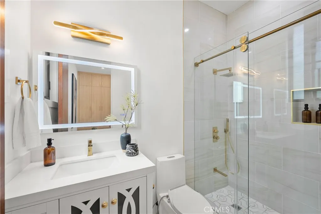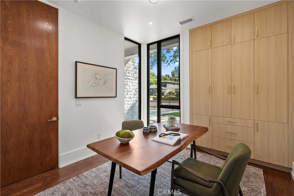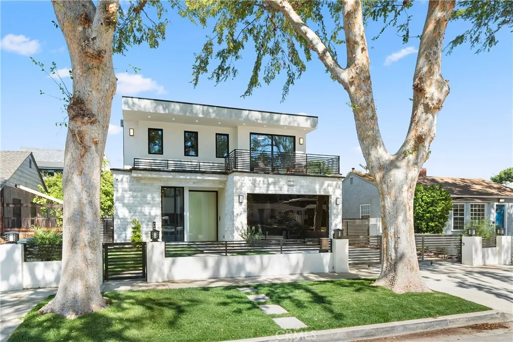 Situated South of the Boulevard on one of the most desirable streets in Sherman Oaks, this newly constructed gated estate offers a 5-bed, 6-bath main house and 1-bed, 1-bath ADU. Designed for modern living, the bright and airy open-concept floor plan is highlighted by lofty ceilings and walls of glass that flood the space with warm natural light. A culinary enthusiast's dream, the gourmet kitchen comes equipped with top-of-the-line Monogram appliances, quartz countertops and a large island with bar seating. The spacious family room features a sleek fireplace and floor-to-ceiling sliding glass door that spans into the kitchen, seamlessly extending your living space outside for true indoor-outdoor living. Head outside to your serene backyard retreat, where you can take a refreshing dip in the sparkling pool/spa, entertain guests in style or relax in total tranquility. Rounding out the main level is a formal living/dining room with a built-in wine cabinet and additional oversized sliding glass door that opens to a side courtyard, along with an ensuite bedroom and powder bathroom. Ascend the floating staircase to find four generously sized ensuite bedrooms and a dedicated laundry room. Unparalleled luxury awaits you in the expansive primary suite, which boasts a private patio, custom walk-in closet and lavish ensuite bathroom, complete with a soaking tub, oversized rainfall shower, smart toilet and double vanity. At the rear of the property, a versatile 1-bed, 1-bath ADU with a living room and full kitchen provides the perfect space for extended family, guests, an office or home gym – the possibilities are endless. Additional highlights include solid hardwood floors, a security system, central vacuum, high end Fleetwood pivoting front door, two-car garage with a frameless glass door and a gated driveway. Perfectly positioned in the heart of Sherman Oaks, this property is only moments away from trendy restaurants and boutique shops found along Ventura Boulevard, and offers easy access to the Valley, Westside, 101/405 freeway and so much more.