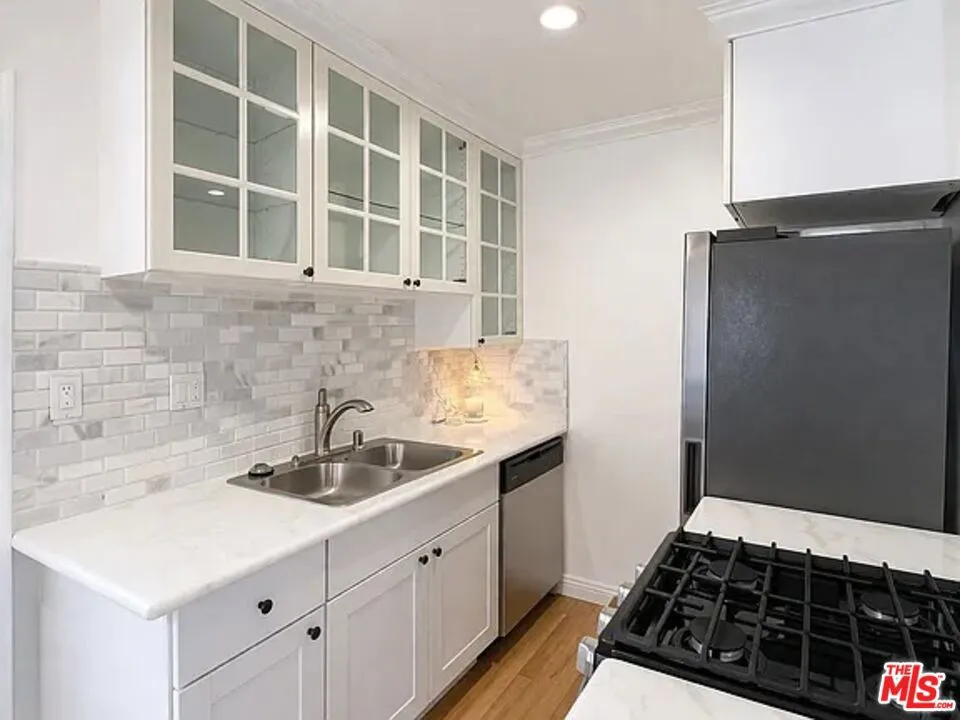Beautiful 1Bed/1Bath at 10th & Wilshire Front facing unit with very large private balcony Steps from some of Santa Monica's best restaurants including Santa Monica Seafood, Huckleberry, El Cholo and more Brand new landscaping with lots of green--gorgeous courtyard centered with fountain and lots of roses Great shared front yard Washer/Dryer in unit Multi zone split system A/C--one unit in living room and another in bedroom1 parking spot located in back parking lot Lots of closet space Granite countertops & stainless steel appliances Hardwood floors throughout Tumbled-marble bathroom Pet friendly Gated property1 yr lease. Water/sewer/trash included. Tenant responsible for gas & electric. No smoking.