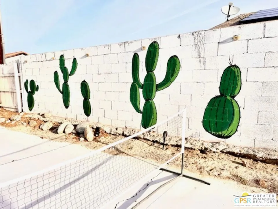 This beautifully maintained mid-century home in Desert Highland Estates features 3 bedrooms and 2 baths, plus a versatile 4th room that can be used as a den, office, or additional bedroom. The home exudes classic Palm Springs character and charm, with an updated kitchen and baths, modern finishes, and spacious interiors designed for comfort and convenience. Large windows bring in abundant natural light and create a warm, inviting atmosphere throughout, and the backyard offers ample room for outdoor entertaining with a cowboy tub, hammock, and porch swing for ultimate relaxation. The property includes leased Tesla solar panels, providing energy savings and reduced utility costs for both environmental and financial benefits; the buyer would assume the existing solar lease. Furniture and games are available for purchase outside of escrow, offering buyers the option of a move-in-ready setup or added value as a vacation rental.