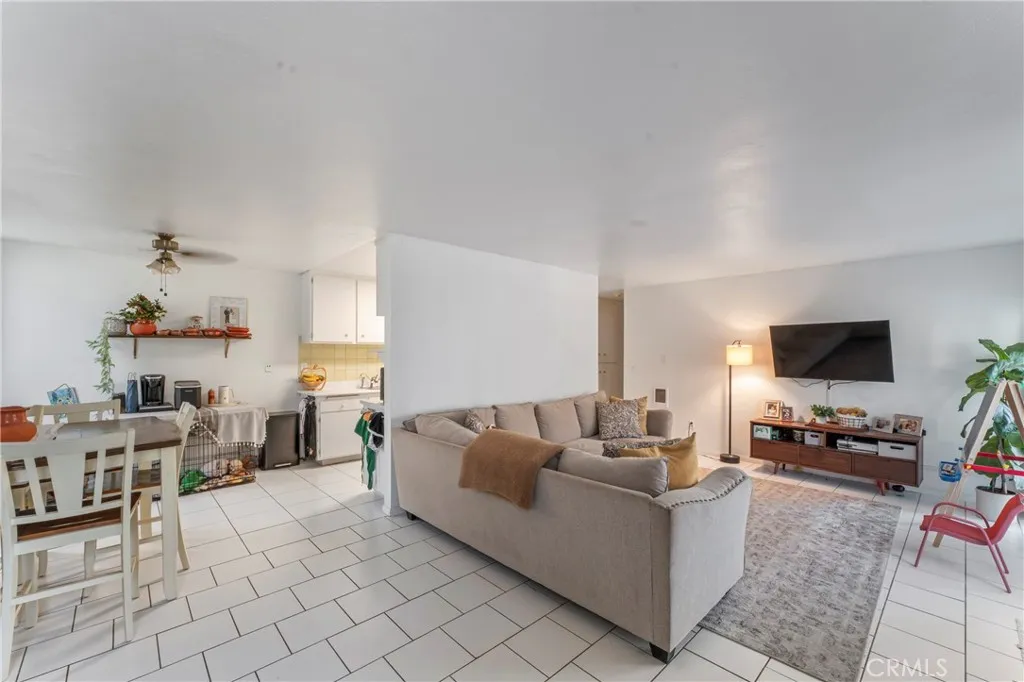 Inside, the home features a bright and inviting living space designed for comfortable everyday living. The living room opens directly to one of the largest private patios in the community, creating an excellent indoor-outdoor flow that is perfect for entertaining, relaxing with a morning coffee, or enjoying Ventura’s cool coastal air and colorful sunsets. The kitchen opens to the dining area, creating a practical and social layout for gatherings, while the updated bathroom adds a fresh modern touch. The home also includes the convenience of an in-home laundry closet, making daily living easy and efficient.