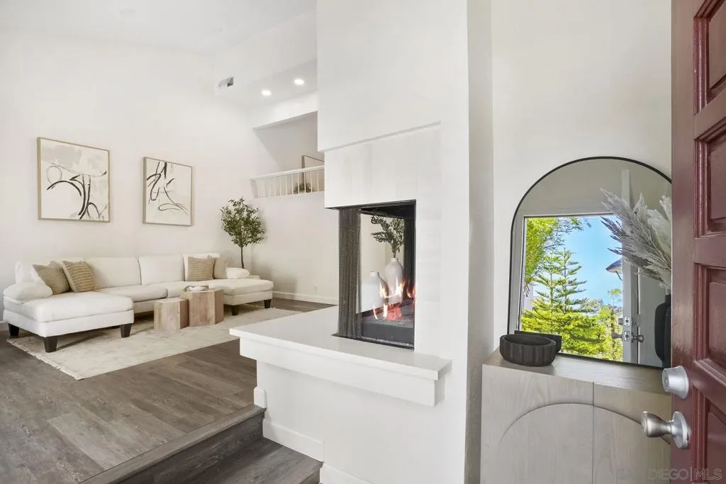 HUGE PRICE ADJUSTMENT - MOTIVATED SELLER! Beautifully updated end-unit townhome in Eastbluff, tucked away from road noise and traffic, flooded with natural light and ocean breezes, offering the rare blend of designer updates, prime location, and below-market pricing. Features include an open kitchen with redesigned layout for enhanced flow, newly renovated bathrooms with designer finishes, updated fireplace surround with quartz hearth, new hardware and lighting, popcorn was removed long ago and recessed lighting added to main living areas and kitchen, hard-surface flooring in main areas, newer windows with plantation shutters, and brand new AC unit, plus recently replaced plumbing throughout the home. Every upgrade has been done with quality and longevity in mind. Additional highlights include new carpet in upstairs bedrooms, custom closet in primary bedroom, and a private gated patio surrounded by mature hedges for the ultimate privacy. Eastbluff community amenities include two pools, spas, and a clubhouse, with HOA dues covering water, trash, sewer, roof, exterior maintenance and landscaping, and termite service. Conveniently located with easy freeway access that avoids high traffic areas, while still very close to shopping, restaurants, La Jolla Village, UTC, UCSD and area beaches.