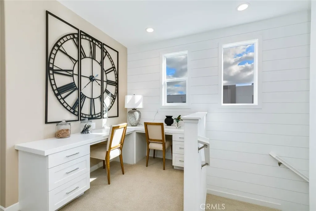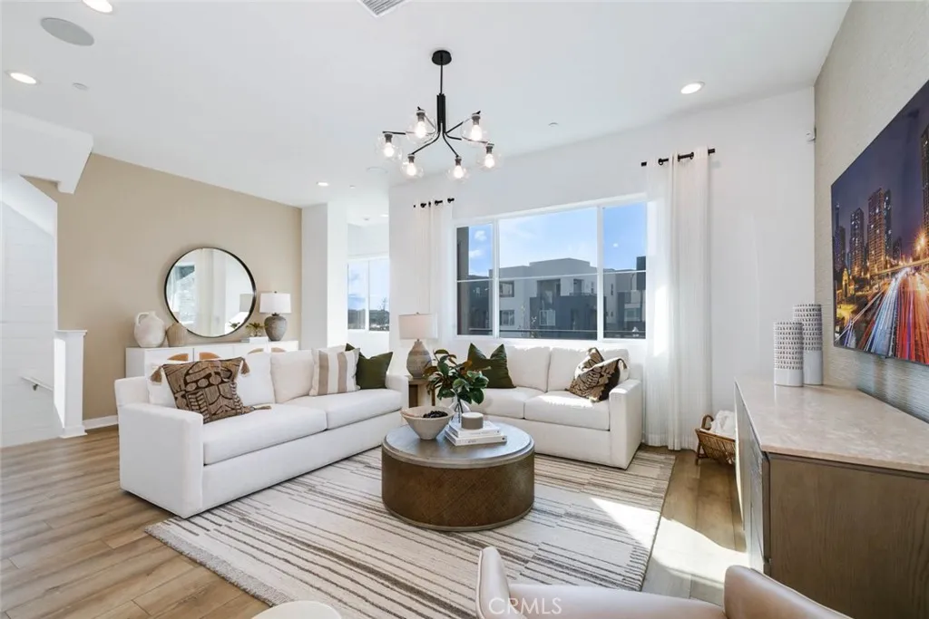FULLY FURNISHED by a designer, all you have to do is pack your toothbrush! This exquisite move-in-ready model home features 4 bedrooms, 3 bathrooms, and a dedicated office across 2,100 square feet of thoughtfully designed living space. Ideally situated in Solis Park, a vibrant enclave within the prestigious Great Park master-planned community, this residence offers a perfect blend of comfort and convenience. The first floor includes an attached two-car garage, while the second level boasts a spacious great room, a contemporary kitchen, and a bedroom with a full bathroom. The kitchen is elegantly appointed with quartz countertops, upgraded cabinetry, and brand-new stainless-steel appliances. The third floor showcases the luxurious primary suite and two additional bedrooms. Zoned for the highly acclaimed Irvine School District, the home is just a short walk from Portola High School, the K–8 Solis Park School, and the community’s amenities, including a park, pool, and clubhouse. Additional highlights include fully paid-off solar panels and the inclusion of all furniture, TV, and washer/dryer—making this truly a move-in-ready home you won’t want to miss.