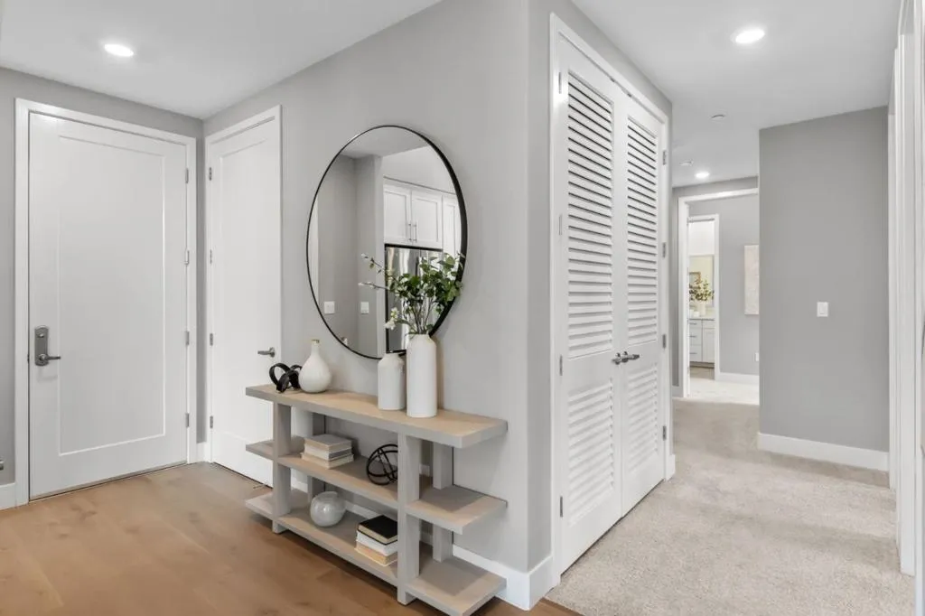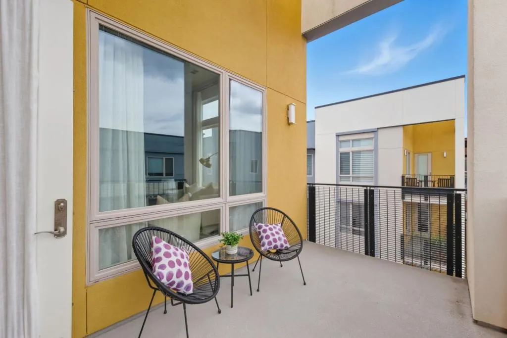 Welcome to Foster Square Community, a vibrant 55+ community in the heart of Foster City. Built in 2020, this modern condo offers an open floor plan with soaring ceilings, tall windows, and abundant natural light that fills every room. Tasteful flooring, recessed lighting, and thoughtful design details create an elegant yet comfortable living space. The home features three spacious bedrooms, including a primary en-suite retreat with a luxurious bathroom and oversized closet. The contemporary kitchen seamlessly connects to the living and dining areas, making it ideal for both daily living and entertaining. The modern, high-end chefs kitchen is outfitted with top-of-the-line appliances, sleek cabinetry, and a convenient breakfast bar, perfect for casual dining. Additional highlights include in-unit laundry, a large private balcony with neighborhood views, the Foster Square community amenities, and convenient access to popular shops, dining, and the Foster City lagoon trails. This unit includes a private, enclosed 2-car garage within the secure parking facility. Quick access to highway 101 makes Bay Area travel & daily commuting a breeze. Enjoy low-maintenance living in this welcoming community designed with comfort, connection, and convenience in mind.