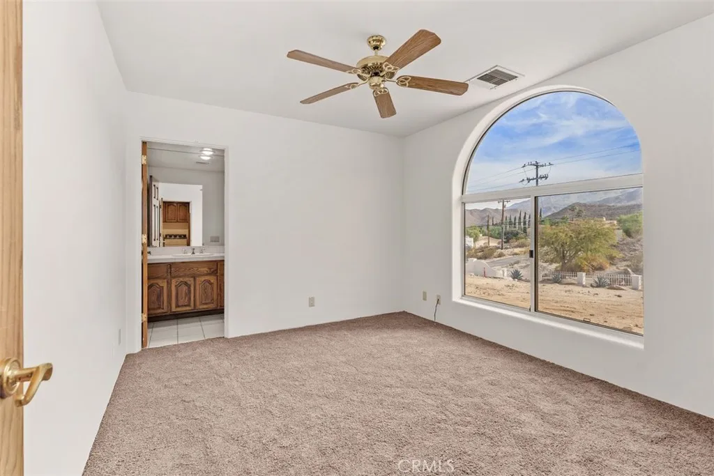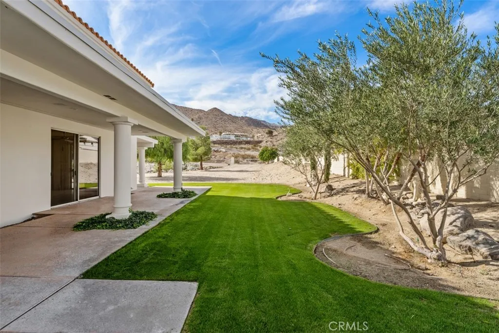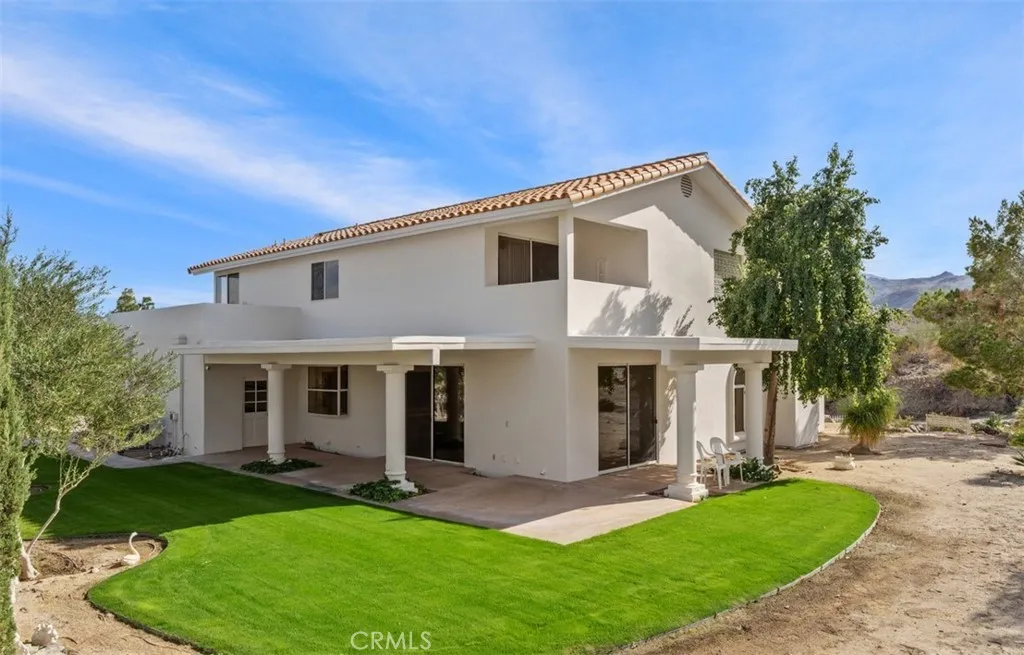 Rare Opportunity in Prestigious Cahuilla Hills! Nestled in one of the desert’s most exclusive enclaves, this impressive estate sits proudly on a sprawling one-acre corner lot (43,560 sq. ft.) offering unmatched privacy, space, and breathtaking mountain vistas. A gated circular driveway and elegant staircase entry create a dramatic first impression, while a second driveway provides easy access to the attached three-car garage. The expansive grounds are thoughtfully designed with lush desert landscaping, olive trees, cypress, retaining wall and irrigation system, blending natural beauty with ease of maintenance. Step through the double-door entry into a formal entry with a Grand Chandelier; leading to the living room filled with natural light, featuring vaulted ceilings, a cozy fireplace, and large windows framing serene mountain views. The adjoining formal dining room offers an ideal setting for hosting gatherings. The spacious kitchen includes a breakfast bar and seamlessly opens to the inviting family room, complete with two sets of sliding glass doors leading to the wrap-around covered patio - perfect for entertaining or enjoying the desert sunsets. A main-level bedroom and full bath provide convenience and flexibility for guests or multi-generational living. Upstairs, the primary suite is a true retreat, boasting a private balcony with panoramic mountain views, a large ensuite bath, and ample closet space. The upper level also features a third bedroom with full bath and an impressive game room with wet bar, 1/2 bath and recently renovated wrap-around deck offering even more sweeping views of the mountains and valley. BONUS ROOM CAN BE CONVERTED TO A 4TH BEDROOM AND/OR 2ND PRIMARY. Newer lower level A/C and brand new upper level A/C, new ducts, new roofing over back patio verandas, new carpet in primary and main floor bedrooms, new interior paint and new electric water heater. The expansive lot offers endless potential - add a pool, spa, Casita, putting green, and/or outdoor kitchen to create your ultimate desert sanctuary. Located just minutes from hiking trails, the world class Shops at El Paseo, fine dining and the renowned Bighorn Golf Club, this property presents an unparalleled opportunity to craft the home of your dreams in one of Palm Desert’s most coveted neighborhoods.