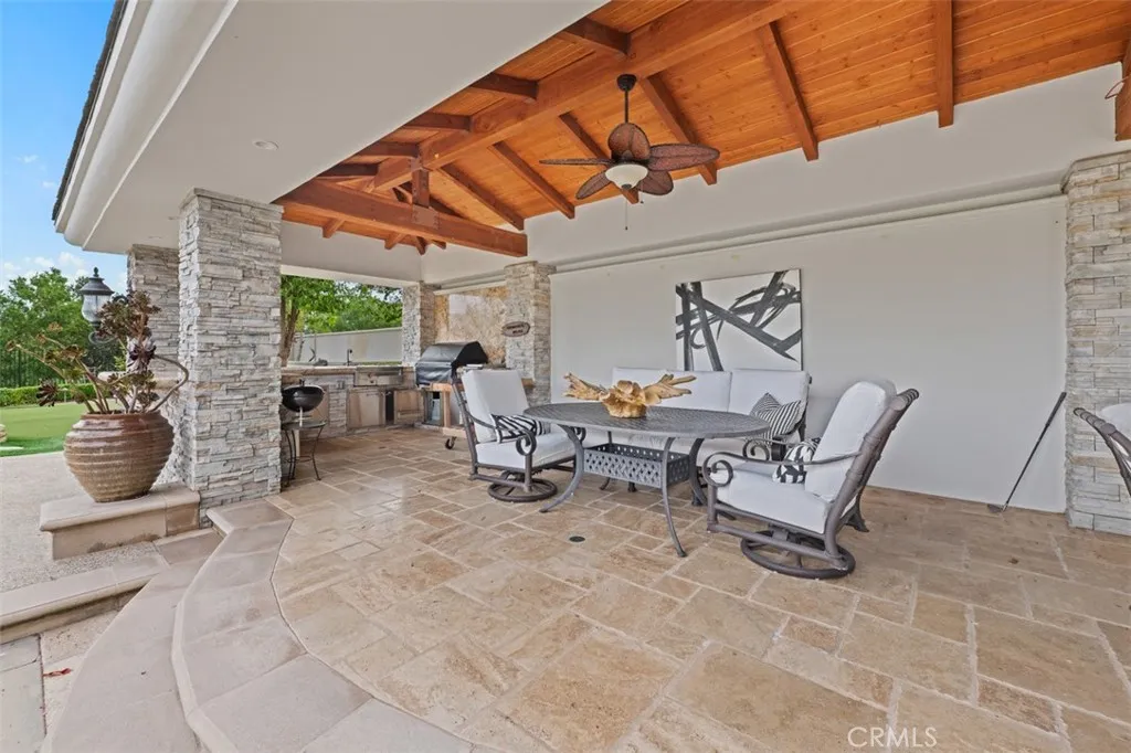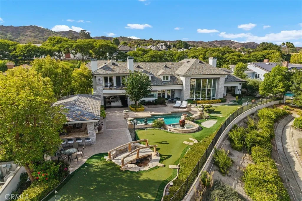 California living comes alive as the folding glass wall disappears, revealing a resort-style backyard built for unforgettable gatherings and quiet relaxation alike. Enjoy a sparkling pool, a covered outdoor living room with barbecue, and a custom putting green—all set against a backdrop of complete privacy and breathtaking panoramas.