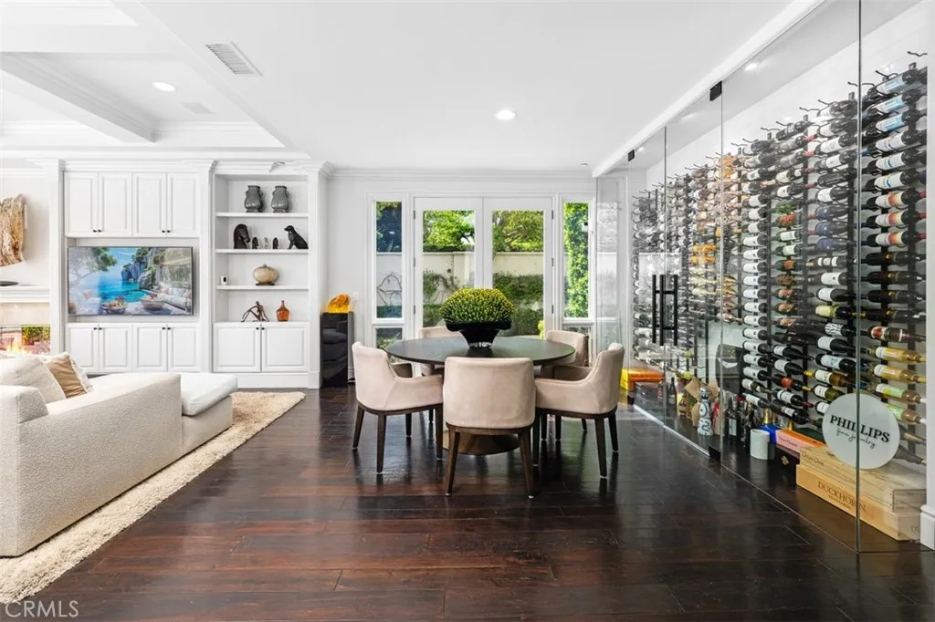 Step inside and experience a world of light and volume: soaring double-height coffered ceilings, an executive office that inspires productivity, and expansive walls of glass that frame the surrounding natural beauty. The bright chef’s kitchen impresses with white cabinetry, quartz countertops, and a picture-perfect window that captures scenic hillside views. At the heart of the home, a stunning climate-controlled glass wine wall becomes both an art piece and a conversation starter, elevating the open-concept entertaining spaces.