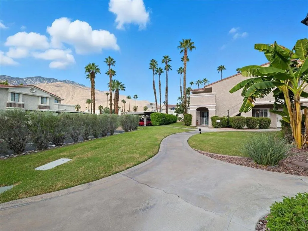 SMART investment meets resort-style living in this potential income-producing Mesquite Country Club property, allowing both short-term and long-term rentals. This stylish downstairs end-unit is a light-filled 1-bedroom, 1-bath condo featuring an open, flowing floor plan with direct access to a private patio overlooking a lush and tranquil greenbelt. The spacious bedroom offers a built-in dresser and is complemented by an updated bathroom with a contemporary walk-in shower.Two private outdoor spaces capture beautiful mountain views, creating an ideal indoor-outdoor desert lifestyle. Conveniently located near shopping, dining, Palm Springs International Airport, and downtown Palm Springs entertainment.HOA dues include water, trash, cable TV, internet, and landscaping. Residents also enjoy access to the community's serene Preserve--an expansive desert setting ideal for peaceful walks and quiet moments in nature.