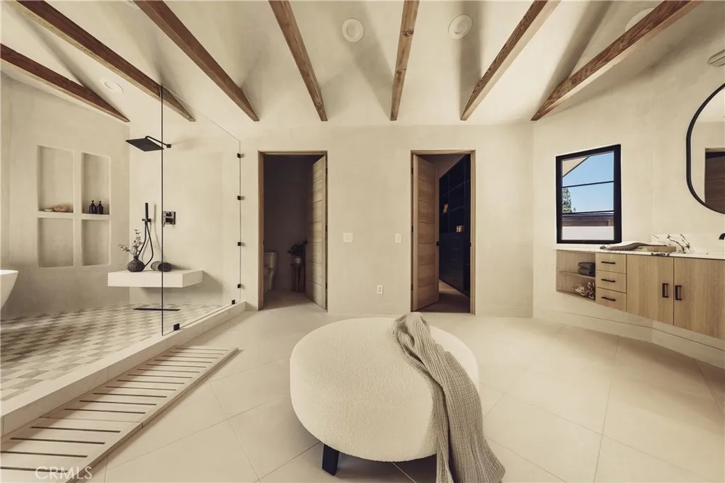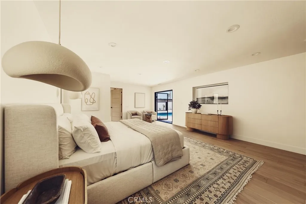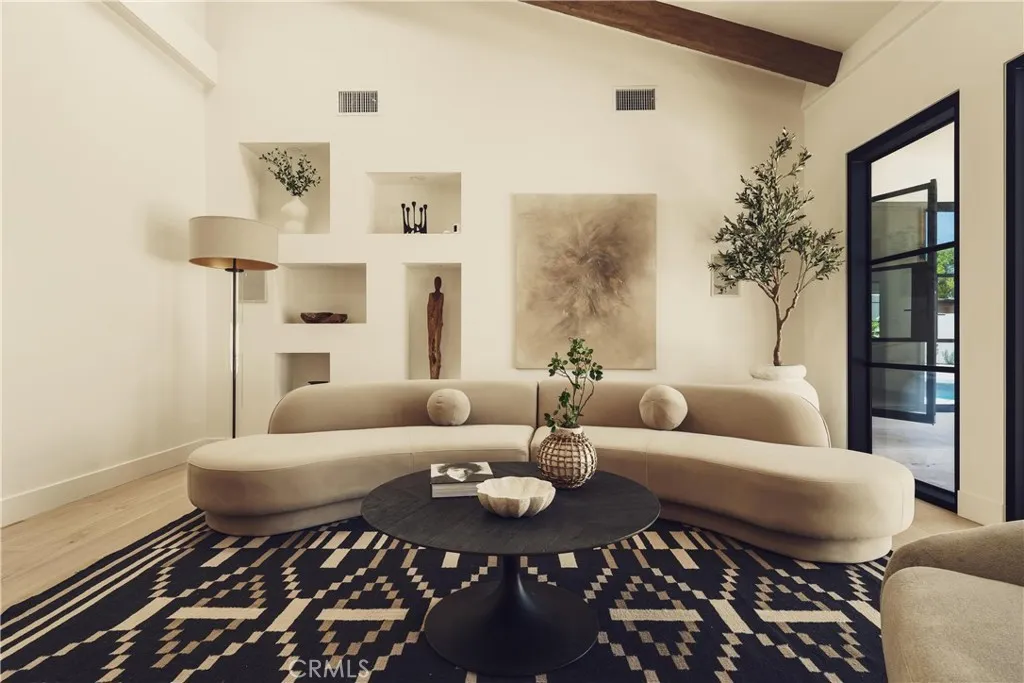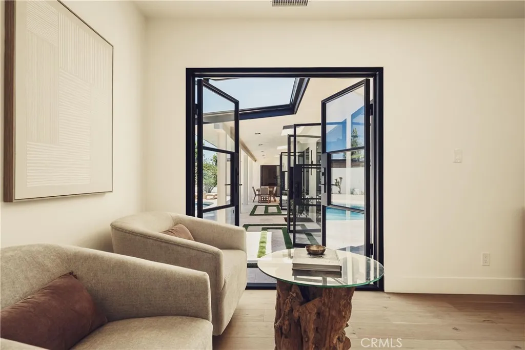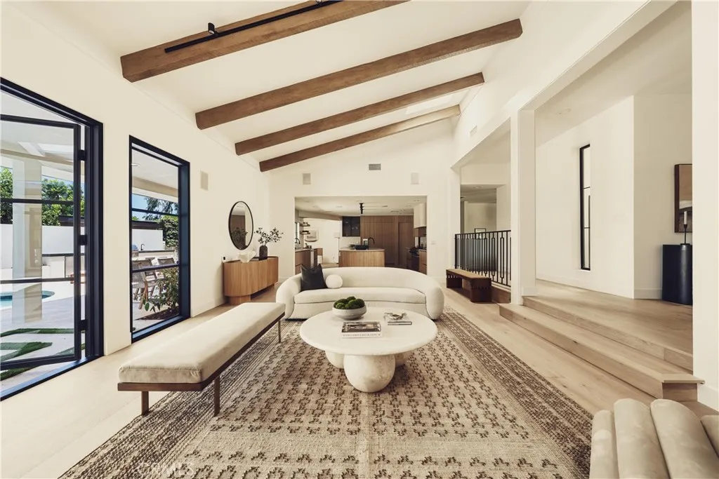 Welcome to this stunning, sprawling residence in the Hills of Encino, offering timeless, luxurious design and exceptional craftsmanship. From the moment you arrive, the smooth stucco façade with limestone accents delivers striking curb appeal. Travertine steps lead you to an impressive ten-foot glass entry door, setting the tone for what awaits inside. The foyer is bathed in natural light, thanks to multiple iron French doors and strategically placed skylights. The great room is anchored by an expansive fluted architectural fireplace, creating a sophisticated, inviting ambiance. Throughout the home, premium finishes, including French oak engineered hardwood flooring. A massive living room faces the backyard seamlessly flows into the chef’s kitchen, highlighted by a large island with fluted wood paneling, abundant white oak cabinetry, top-of-the-line Thermador appliances, and a walk-in pantry for added convenience. Adjacent to the kitchen, a private family room offers a cozy retreat separate from the main entertaining areas. A central hallway leads to two bedrooms, a formal dining room featuring a built-in wine rack, a stylish bathroom, and a utility room with laundry facilities. In the southern wing, you’ll find two en-suite bedrooms and the expansive primary suite overlooking the backyard. The primary bathroom is a showstopper, with dual showers featuring travertine checkered floors, limestone flooring, and a custom dual vanity topped with Arabescato Corchia marble. The custom walk-in closet provides generous storage and organization. The low-maintenance backyard is perfect for entertaining, with travertine flooring throughout, a large pool and spa, built-in barbecue, and integrated speakers. An additional spacious side yard features a pergola-covered patio with peek-a-boo views. For added convenience, there is an additional bathroom with access from the side yard for those using the pool. This home offers a luxurious, timeless aesthetic sure to impress, all within close proximity to the best shopping and dining the Valley has to offer. Seller is open to credit buyer towards rate buy down with the right price.