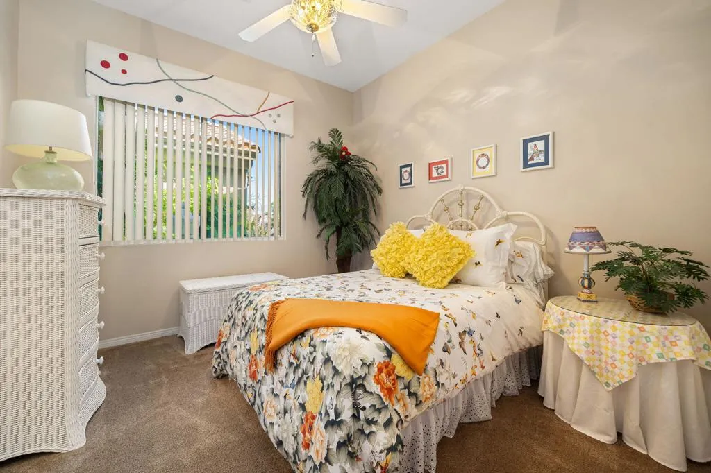 Light, bright, and effortlessly inviting, the Monaco is one of Sun City's most sought-after floor plans, prized for its open-concept living, thoughtful separation of guest spaces, and flexible layout. Situated on a corner lot at the end of a quiet street, this home enjoys added privacy and an extended backyard.Upon entry, soaring ceilings and expansive glass sliders fill the home with natural light. The open kitchen is designed for both everyday living and entertaining, featuring a generous center island, dual ovens, and a separate microwave. Recent upgrades include a new HVAC system installed in 2020 and new ductwork completed in 2023, enhancing comfort and efficiency throughout the home.The primary suite offers a tranquil retreat with an ensuite bath showcasing a soaking tub, dual vanities, a walk-in shower, and clerestory windows. An oversized guest suite functions as an attached casita, complete with its own ensuite bath and private entrance through glass French doors from the courtyard. A third bedroom provides additional flexibility and may be used as a bedroom, office, or den. All bedrooms feature ensuite bathrooms.Step outside to a beautifully landscaped backyard with an extended patio, fruit-bearing shade trees, and lush greenery--an ideal setting to enjoy morning coffee under blue desert skies. The two-car garage plus golf cart space includes a custom tool/work area and abundant storage.Conveniently located near shopping, dining, and top medical centers, Sun City is a premier 55+ community offering two golf courses, tennis, pickleball and bocce courts, three clubhouses, and two fitness centers. Furnishings may be available outside of escrow.