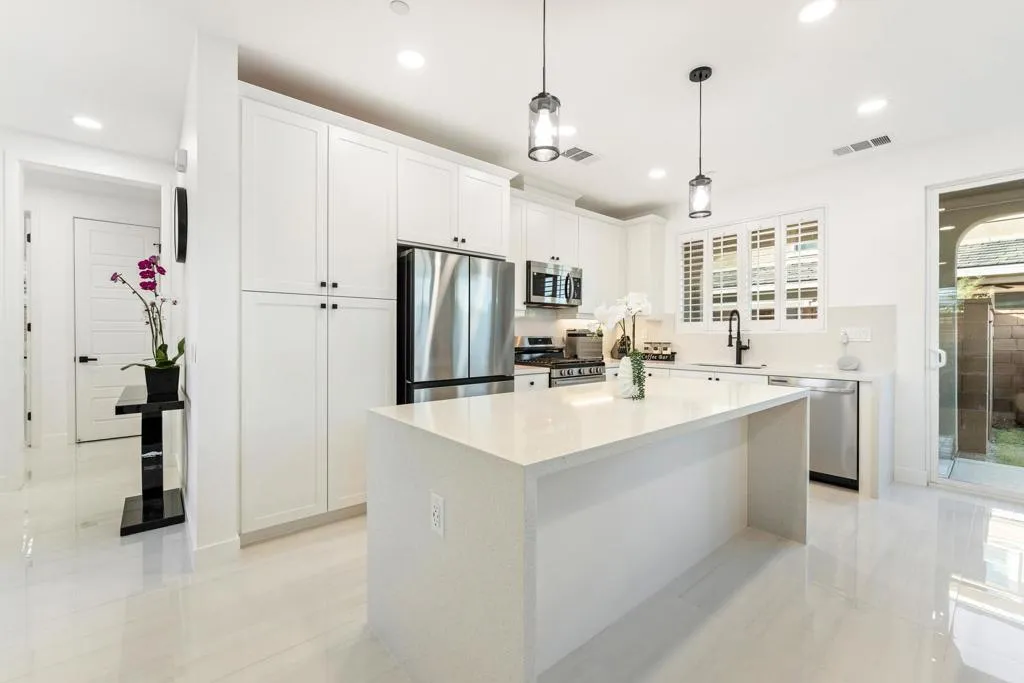 Welcome to Campanile! This exquisite 4-bedroom, 3-bathroom residence offers nearly 2,000 square feet of meticulously renovated living space, featuring high-quality building materials throughout, including premium porcelain flooring. The kitchen has been enhanced with new quartz countertops, and the bathrooms are equipped with modern Smart Toilets, auto flush foot sensors, heated seats, and brand-new showers. The solar system is fully paid off, contributing to both the property's value and energy efficiency.The stylish upgraded flooring creates a cohesive flow throughout the home, perfectly complementing the open-concept floor plan that seamlessly connects the living room and kitchen--ideal for both daily living and entertaining guests. Additionally, this residence features a convenient laundry room, a spacious 2-car garage, and a fully fenced back and side yard adorned with block walls and ficus trees, ensuring comfort and privacy. The low-maintenance yard serves as an excellent canvas for your personal touch and landscaping ideas. Nestled in a desirable community with access to a sparkling pool and excellent connectivity to the entire valley, this home is attractively priced and ready for you to move in. Do not miss this opportunity--schedule your showing today and make Campanile your new home!