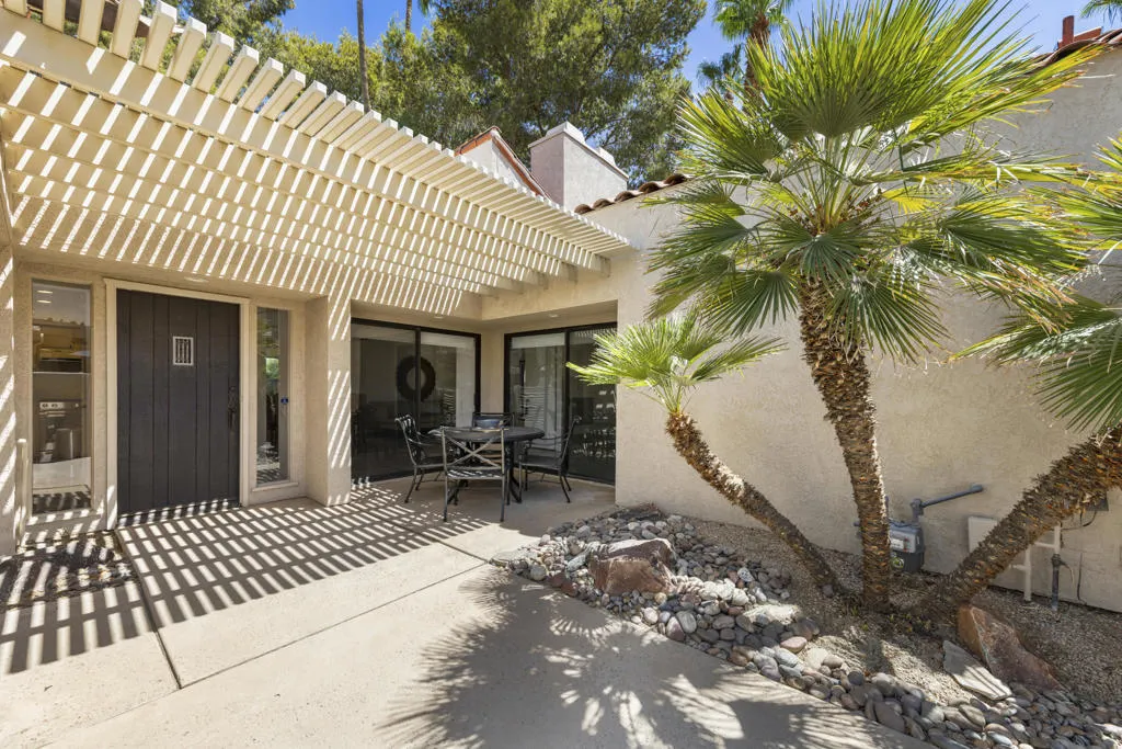 Enjoy resort-style living in this beautifully appointed 2-bedroom, 2-bath Tennis Villa located in the exclusive Mission Hills Country Club. Furnished and thoughtfully designed, this home features vaulted cathedral ceilings, updated tile flooring, and abundant natural light throughout. Highlights: Located steps from the pool and hot tub, Primary suite with fireplace, soaking tub, walk-in shower, dual vanities, and separate closets, Second bedroom with en-suite bath and walk-in closet, Spacious private courtyard for seamless indoor-outdoor living, Living room with fireplace, wet bar and sliding doors to the courtyard, KitchenAid stainless steel gas range and ample cabinetry, Large laundry room and detached 2-car garage. HOA: Roof, Landscape, Spectrum package, 4 pools and Spas and Guard Gate. Social and Sports/Fitness Center requires a separate membership.