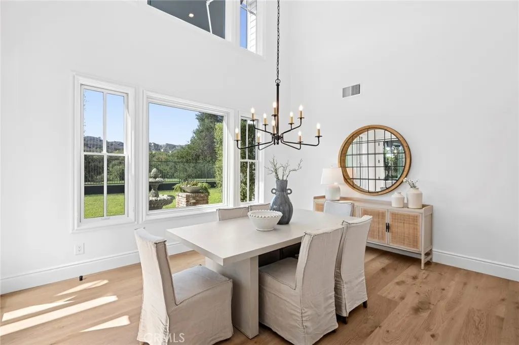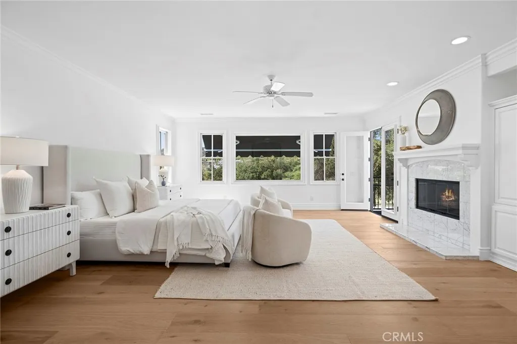 SWEEPING VIEWS And LOCATION! Amazing Sunset and Golf Course Views Overlooking the 18th Fairway of the North course at Coto de Caza. One of only 11 homes on a single loaded cul de sac street with a short walk to the Coto de Caza Golf and Racquet Club. The Simi-custom Home was designed and built by Stonefield Development with a tradition of beautiful and unique architectural design and with exceptional quality features throughout like the solid core 8 ft. wood doors, dual staircases, and walk-out view balcony off the primary bedroom. Three gas-burning fireplaces. The exquisite residence delivers the ultimate in luxury with natural elements in its open light and bright 5000+ sq ft. The residence is graced with a two-story volume ceiling in the Entry, Formal Living, and Dining Rooms. Comforts include 5 spacious bedrooms, 4.5 bathrooms, 4-car garage, Library/Office, and large open upstairs lounge area for the family or office plus A Separate area for reading/ study. Many large Picture windows (9 are new and installed by Anderson). The home has many modern upgraded features, including wide plank wood flooring throughout (except the two staircases), which has beautiful wool carpeting. All new Toto toilets, including a bidet washlet, are in the primary bathroom. Completely remodeled master bath with Newport Brass Fixtures, solid slab stone shower, and counter tops, a free-standing tub for that soothing bath while enjoying the stunning views. The open Kitchen has a large walk-in island with a Viking cook top, two new Viking dishwashers, and a spacious nook with a large picture window to enjoy the views of the golf course and hills. Opening to a great family room with a new floor-to-ceiling custom lime stone fireplace with custom mantel. The French door leads to the partially covered and open patio, a lush backyard with panoramic views. A convenient back staircase leads to the 2nd level, with 4 spacious bedrooms, including the main suite has a wall of windows for the views. a fireplace, and a walk-out balcony. All new Emtec black hardware and new black thresholds throughout, Newer paint inside and out. Epoxy Garage floors and storage cabinetry. All new lighting inside and out. Many electrical outlets were replaced. New Canvas Awnings on 7 windows, updated landscaping. Some roof areas replaced, new rain gutters were installed, and so much more. Must see to appreciate.