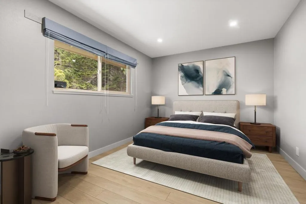 Welcome to this beautifully updated townhouse in sunny Park Pacifica! Completely renovated in 2023, this home features new walls, windows, flooring, lighting, baths, paint, and all-new electrical throughout. Step inside to a bright and inviting living room that opens to a private front patio perfect for relaxing or enjoying the coastal breeze. The main level includes a convenient half bath, a thoughtfully designed kitchen with brand-new appliances and an LG washer and dryer, plus an adjacent laundry closet. The dining area flows seamlessly to the backyard ideal for entertaining or enjoying outdoor meals. Upstairs, youll find two comfortable bedrooms and an updated full bath. The primary suite includes a private balcony, giving you three outdoor spaces to enjoy. Roman shades throughout the home add a refined touch of style and privacy. Additional highlights include a detached one-car garage, an assigned parking space, and a private storage closet. Perfectly situated near local dining, shopping, Frontierland Park, scenic trails at San Pedro Valley Park, and the stunning Pacifica State Beach this townhouse combines modern comfort with the best of coastal living.