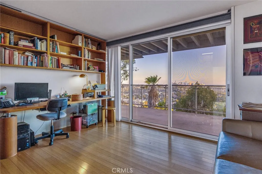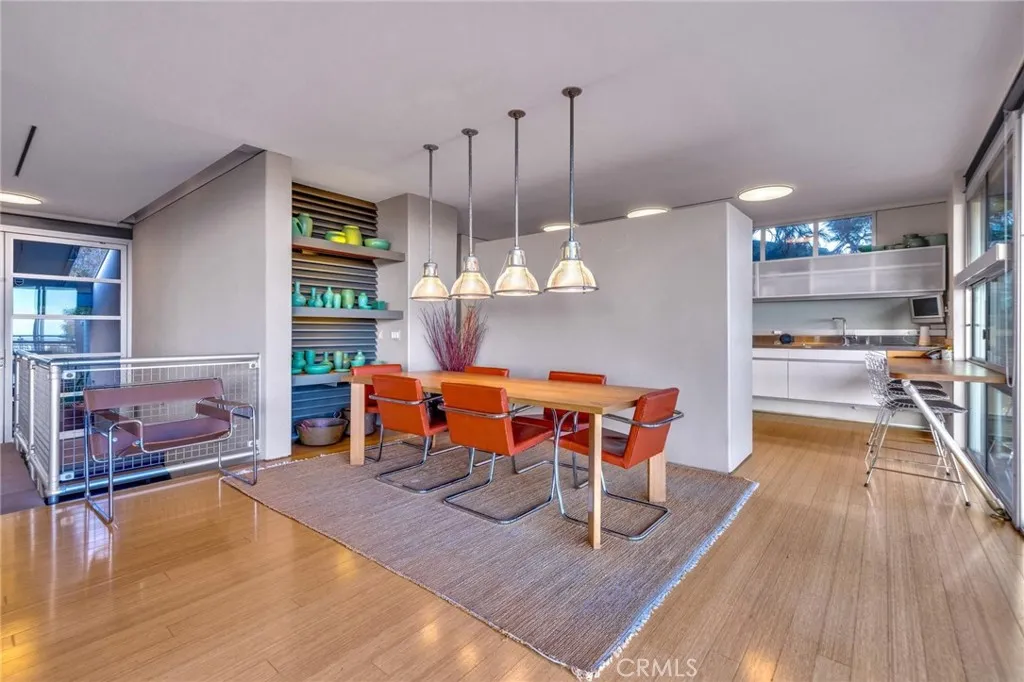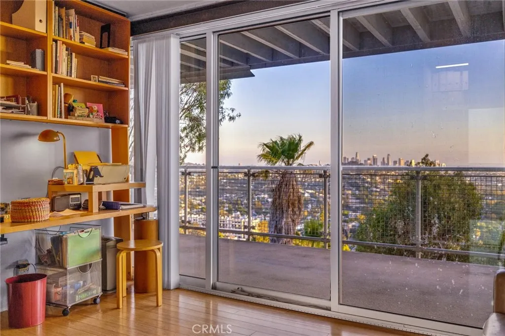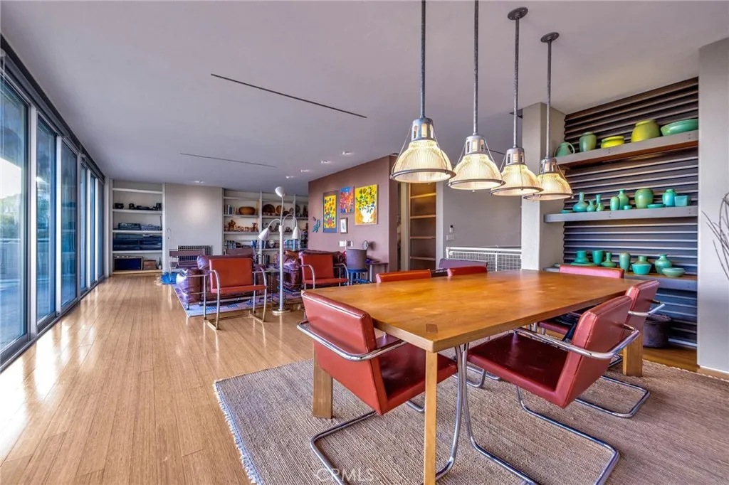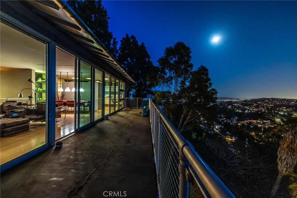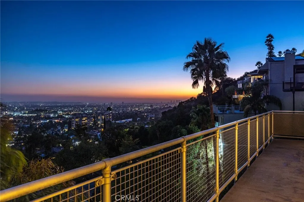 Expansive glass walls and single-pane picture windows flood the interior with natural light and showcase panoramic views of the Los Angeles skyline and surrounding mountains. Whether you're enjoying your morning coffee or a sunset and dinner, every moment is framed by breathtaking scenery.