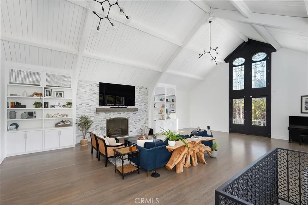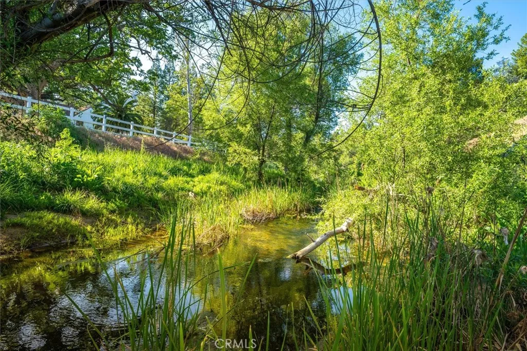 A rare private canyon estate set on its own elevated hilltop within a gated enclave south of the boulevard, offering sweeping views of Ladyface Mountain and a serene creek below. A cherry blossom-lined approach welcomes you into over 1.3 acres of serene natural beauty. The property overlooks surrounding horse properties and a year-round creek that flows toward Malibou Lake—where the sounds of water, birds, and evening frogs create a peaceful, immersive retreat. The approximately 6,167-square-foot residence features expansive living spaces filled with natural light, thoughtfully designed to capture the surrounding canyon views. A curated collection of custom glasswork—including stained, beveled, and etched details—adds warmth, character, and architectural distinction throughout. The home offers seamless indoor-outdoor living, with multiple balconies and outdoor spaces designed to take in the setting—from morning coffee off the kitchen to quiet evenings overlooking the canyon. A private top-floor primary suite serves as a true retreat, elevated above the landscape with a bird’s-eye view of the horses across the creek. The suite features a spa-inspired bathroom with steam room and an expansive walk-in closet. The lower level provides exceptional versatility with a professional recording studio complete with isolation booth, along with a separate guest apartment—ideal for a private creative compound, multigenerational living, or extended stays. Additional features include a dedicated mudroom, two large storage areas, a private outdoor patio, built-in garage storage, and an electric vehicle charger. Outdoor spaces are designed for both relaxation and entertaining, featuring a wraparound porch, multiple seating areas, pizza oven, gazebo, and mature fruit trees. Recent improvements include nearly $400,000 invested into the property, including interior updates, refreshed front landscaping, hardscape improvements, termite inspection, and a newly enhanced presentation for this relaunch. The home is also connected to sewer (no septic). Located within the award-winning Las Virgenes School District and just minutes from Malibu, this is a rare opportunity to own a truly special canyon estate. Agoura Hills living at its FINEst!