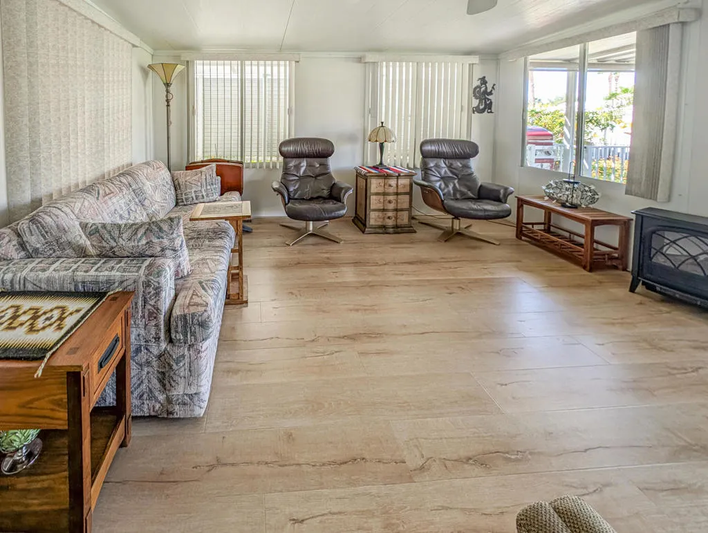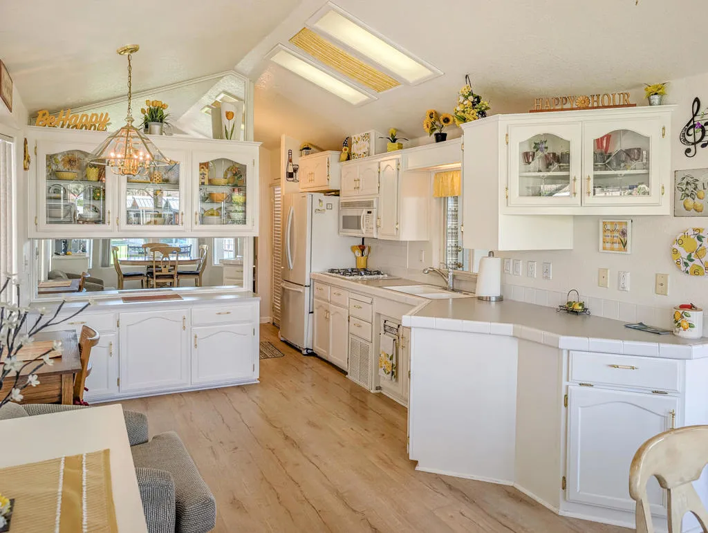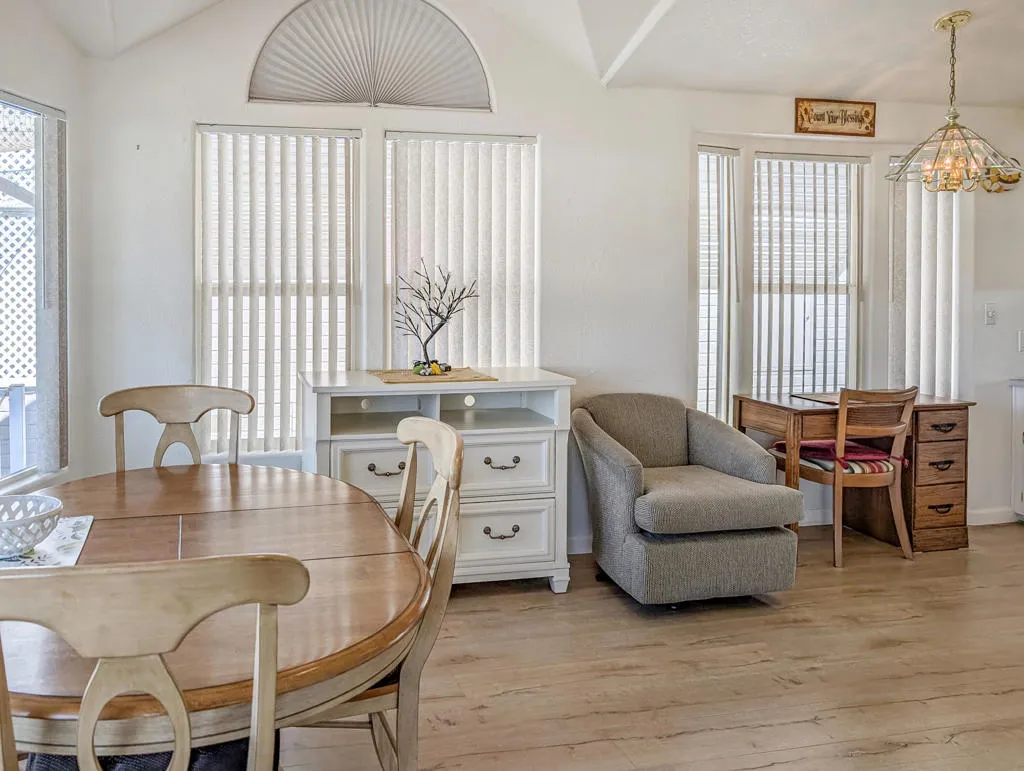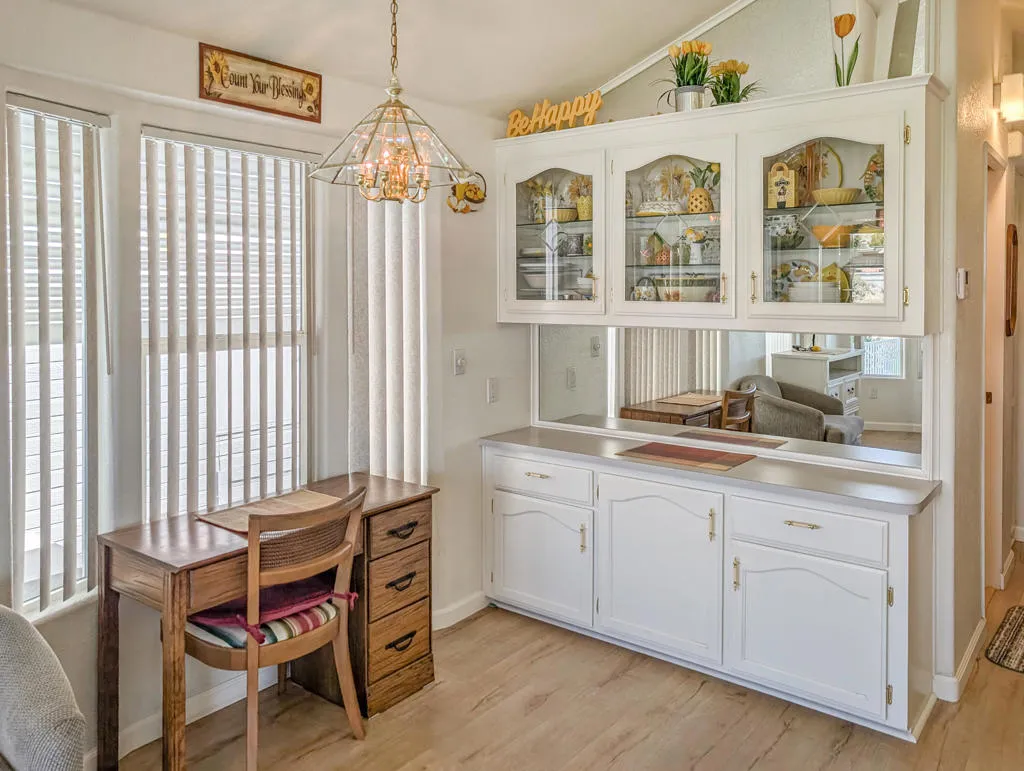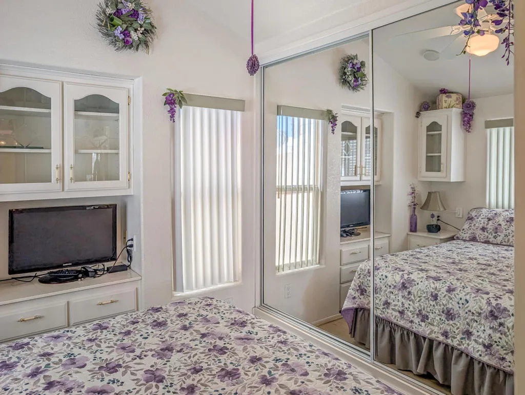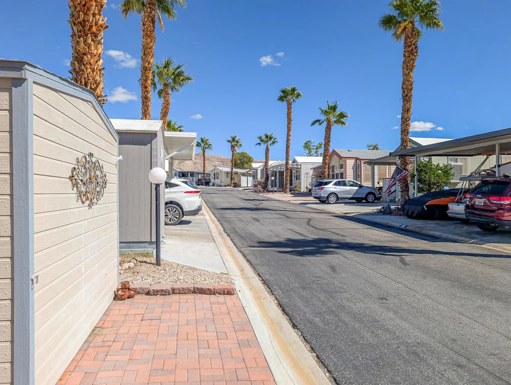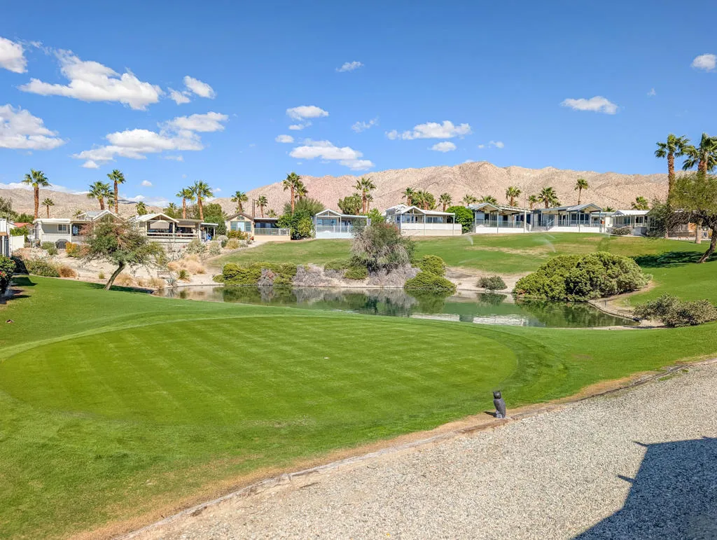 This stunning home radiates charm and warmth, featuring a meticulously maintained 2005 Hallmark Park Model with approximately 550 sq. ft. of living space. The residence includes 1 bedroom and 1 bathroom, making it an ideal retreat for comfort and relaxation. Pride of ownership is evident throughout the house, with beautiful wood floors enhancing every room with modern conveniences including a washer/dryer, water softener and a peaceful location, offering amazing views of the 9th hole of the golf course and a lovely water feature while enjoying your own private covered deck, designed to provide a truly incredible outdoor experience. With such inviting scenery, you might find it hard to ever leave this tranquil space. The residence is exceptionally clean and bright, requiring minimal maintenance--perfect for a vacation getaway in the sun or as a full-time home. Caliente Springs is a premiere 55+ gated community nestled in the beautiful desert. Residents enjoy a wealth of amenities, such as: A 9-hole golf course, pickleball and tennis courts, healing mineral fed pool and spas and an active and friendly community. Beyond the inviting comforts of this charming retreat, you'll discover a vibrant lifestyle where neighbors become friends, and every day brings new opportunities for relaxation or recreation. Whether you enjoy morning strolls along manicured paths, friendly matches on the courts, or simply savoring the tranquility of your own oasis, this home offers the perfect blend of privacy and community spirit. With convenient access to resort-style amenities and a welcoming environment, you can embrace the best of desert living and create lasting memories in a place you'll be proud to call home. Lot is not owned; space rent is $950. Golf cart included with home.