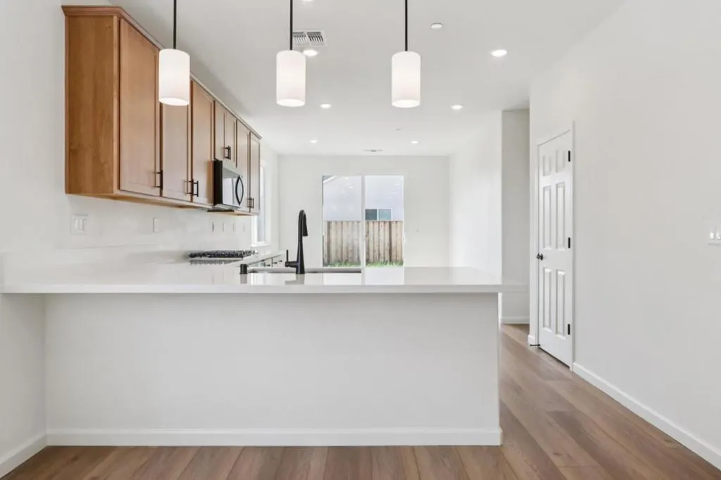 Why rent when you can own a brand new, single-story home in the picturesque Hollister Hills. A thoughtfully designed floor plan includes a separate family and dining area. A spacious kitchen boasts a peninsula, quartz countertops, pantry, and stainless-steel appliances. The primary bedroom is located at the back of the house for added privacy and leads to a spa-like primary bath with dual vanity sinks, shower and large walk-in closet. Dedicated laundry room. Luxury vinyl plank flooring at entry, family, kitchen and dining areas. Other features include 40-amp. electric charging station pre-wiring, a solar energy system (lease or purchase required),LED lighting and a limited 10-year warranty. Easy commute to Silicon Valley. Minutes to historic downtown Hollister, and award-winning local wineries, Hollister Hill State Vehicle Recreational and Pinnacles National Park. Move-in ready!