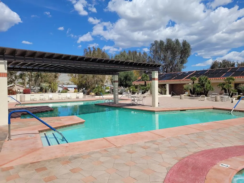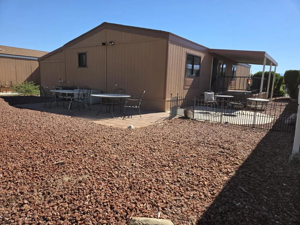 This 1988 Skyline manufactured home, with 1258 square feet of living space, two bedrooms, and 1 3/4 baths, is an oasis of tranquility and good taste in fabulous Vista Montana, the 'Gem Of The Desert'. The home has a split bedroom floorplan - the bedrooms are at opposite ends of the house for maximum privacy. The primary entrance to the house is via the west-facing covered deck, an area perfect for entertaining or relaxing while enjoying the expansive greenbelt views. A small concrete slab patio area is nestled near the rear of the property and is easily accessed by the deck. An adjacent second patio, made of concrete pavers and located at the back of the home, offers one of the best views in all of Vista Montana and is the perfect place to entertain guests or relax with morning coffee or evening wine. The front door enters into a large greatroom with vaulted ceilings and newer carpeting (which runs throughout most of the home). Opposite the front door is the kitchen, with an abundance of white cabinetry and newer stainless steel appliances. The dining area is adjacent to the kitchen and is open to the living room. At the southern end of the home is the larger of the two primary bedrooms; this bedroom has a full ensuite bath, a large reach-in closet, and plantation shutters. At the opposite end of the home, down a short hallway, lies the second primary bedroom with a remodeled three-quarter bath and walk-in closet. The laundry room, with a full-size washer and dryer, has direct access to the gated carport. This home has a recorded 433A. Vista Montana is an active 55-or-better community with a large clubhouse, two pools, two spas, shuffleboard, fitness center, and more. Call today for your private showing.