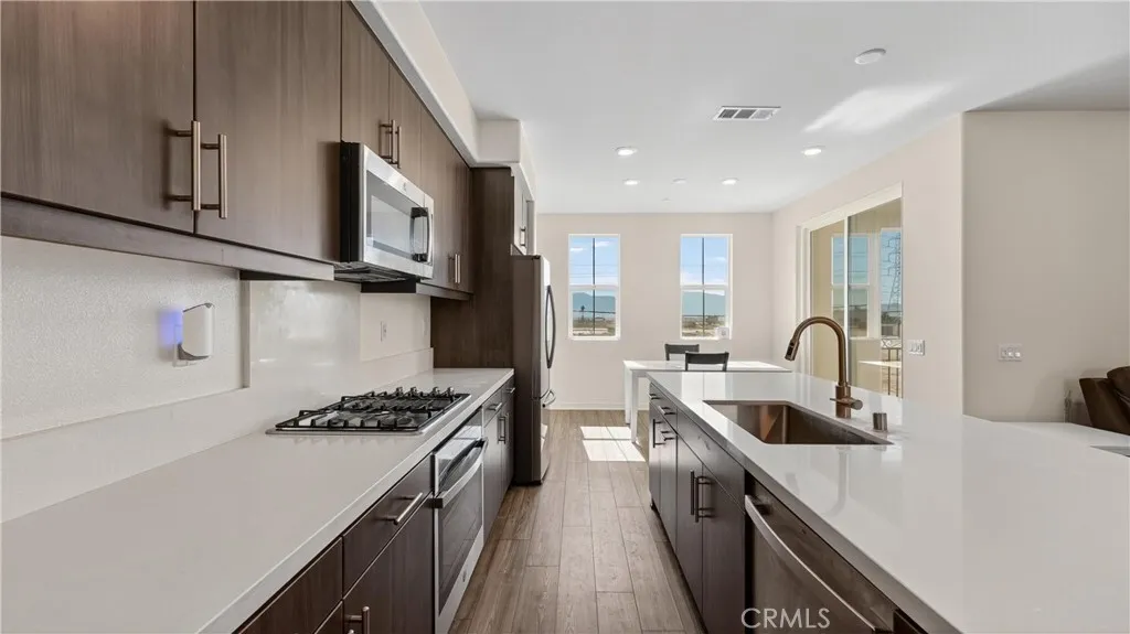 FHA Approved Complex & Solar is paid off and OWNED! Stunning 3-bedroom, 2-bathroom condo, perfectly situated on a desirable end unit in the sought-after community of The Preserve at Chino! This home features a spacious, open-concept kitchen with a large island, large pantry, and ample storage, making it perfect for entertaining or everyday living. The primary bedroom boasts a large open closet, providing plenty of storage and convenience. Plus, enjoy a south-facing balcony, offering the perfect space to relax and unwind. Enjoy an array of resort-style amenities, including a pool, relaxing spa, fully equipped fitness center, tennis courts, multiple sports courts, outdoor barbecues, and a dog park. The community also offers fantastic indoor spaces such as a computer center, multipurpose room, library, movie theater, game room, and crafts room, along with a business center, event rooms, and a café shop. Conveniently located near local shopping centers, this home offers the perfect blend of comfort, luxury, and convenience. Close to the 71 & 91 Freeways.