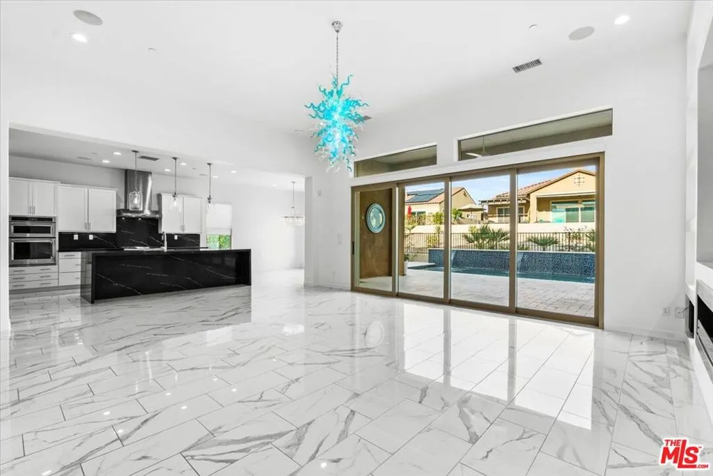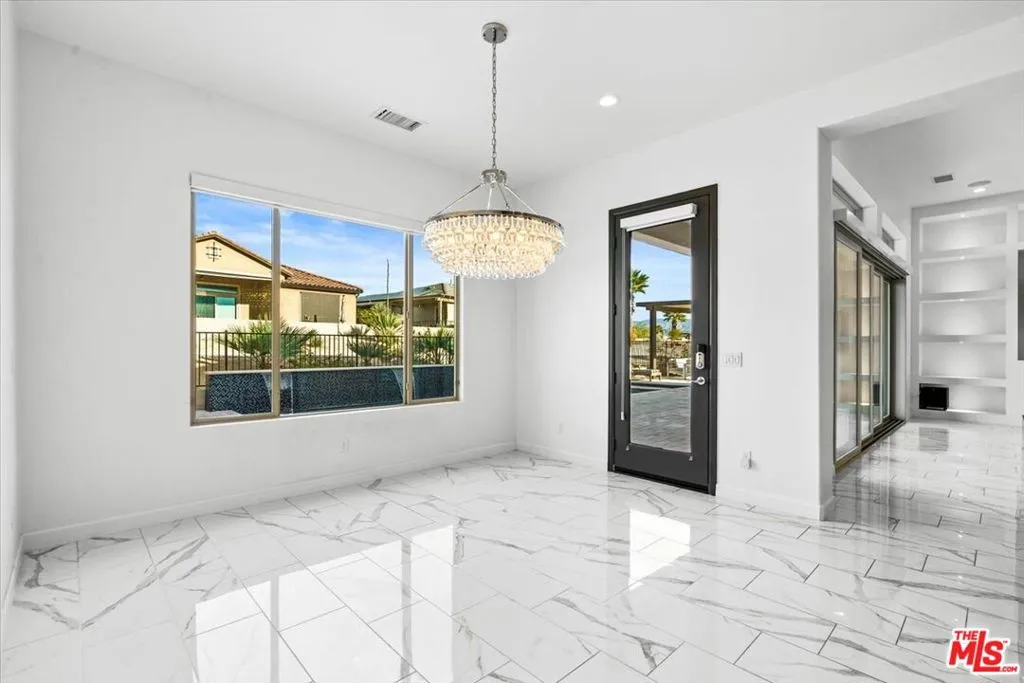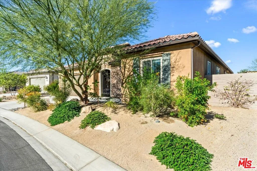 Welcome to 14 Merlot, located in a quiet pocket of Del Webb Rancho Mirage. Walking distance to the club house, where all the action takes place. This home is over 2500 sq ft of living space, it is an expanded version of the Journey model. When you arrive at this welcoming home, you see clean, detailed lines directing you to the fireplace in the living room and an outdoor oasis. The sparkling blue water pool is one of the longest in the community. It also has a spa and waterfalls. 2 Pergolas, covering the built in BBQ island outdoor kitchen. Inside the home, the kitchen is equipped with not one, but has 3 ovens, 2 full size and one convection. It is perfect for cooking your favorite meals. You will also see the largest Range from Kitchen Aid, stylish Quartz countertops throughout the home and backsplash in the kitchen. Ceramic tile flooring thought-out this home, the living room has a custom built in shelving with lighting, the home is pre-wired and a smart home. One of the most exciting things is the Premium stackable sliding doors, bring the outdoor in. Simply marvelous, as you enter the Primary bedroom, you see a second fireplace and an additional door to the outdoor playground. The spa like shower and large closet enhance the space. There is a casita/2nd bedroom has it's own entrance for your guests. The Office/den can be used as a 3rd bedroom. If you are looking for a home that is move-in ready, filled with the highest end of upgrades, this is it. There are 38 solar panels leased at $277.00/month. Do not miss this rare home.