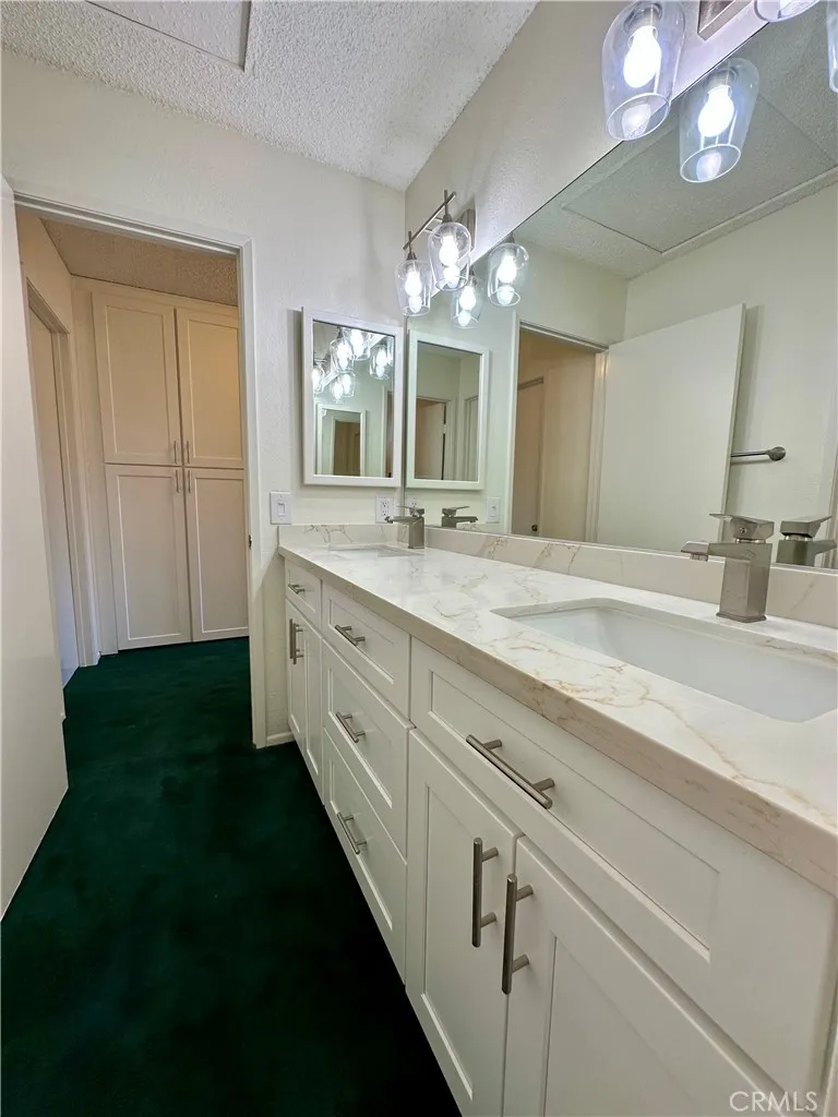 Click on link to walk this home in 3-D from your mobile device right now! This stylishly updated condo is tucked away in a quiet, gated 13-unit community and offers a clean, modern feel with well-kept flooring, fresh interior paint, updated lighting, and a remodeled kitchen featuring sleek cabinetry and counters. The home includes two bathrooms—one full upstairs and a convenient half bath downstairs for guests—both featuring all-new cabinets and faucets, with matching stone surfaces that flow beautifully through the kitchen and the storage area countertop at the top of the stairs. The layout offers generous closet and storage space, along with the rare convenience of a one-car garage plus an additional carport located right outside your front door. The building is secure and well-maintained, with a welcoming atmosphere and an on-site laundry room. Ideally located near shopping, dining, and freeway access, this home blends comfort, style, and everyday convenience.
