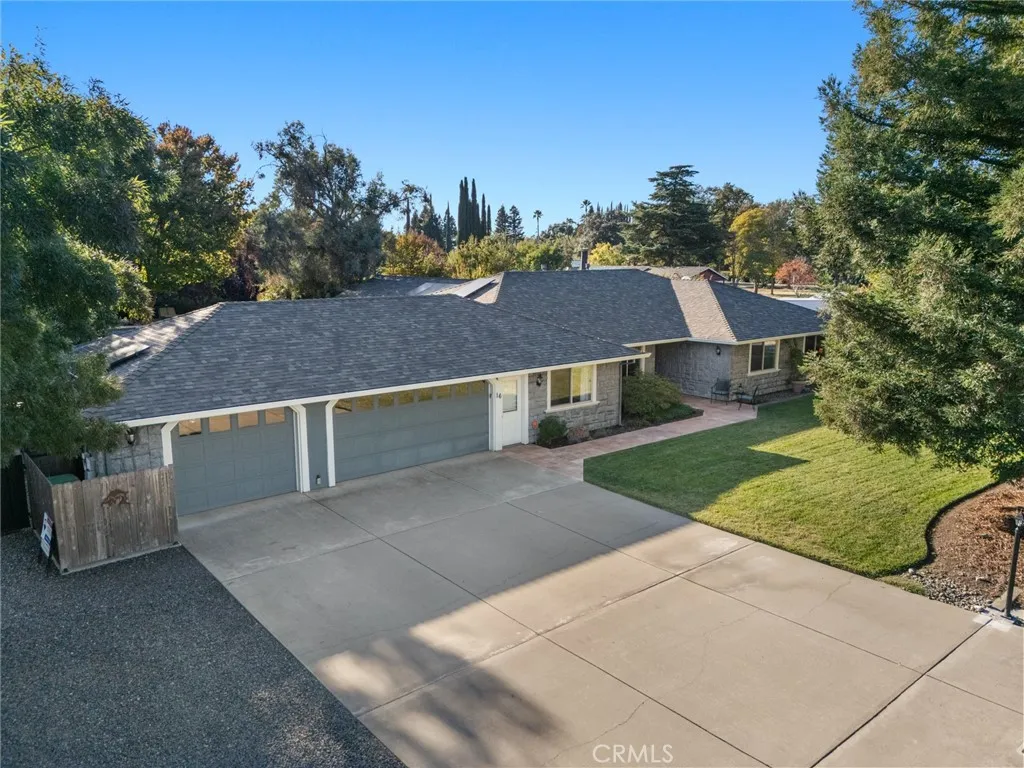 Exceptional North Chico home on an oasis like 1.48-acre parcel. Featuring 3beds/3baths plus office or 4th bed, custom wood craftsmanship and built ins throughout, gourmet kitchen with island, and a huge 24'x39' family room with wet bar. Enjoy formal living and dining, a spa like master suite and a cozy wood-burning fireplace. Outside offers lush landscaping with an in-ground 20x40 salt water pool, outdoor shower, expansive patio, two raised garden bed areas, chicken coop, and plenty of RV parking. The 12x13 shop features both vaulted and covered concrete storage. Includes 3-car garage and 13.7KW solar system w/ generator hookup. A rare blend of craftmanship, comfort, and outdoor living. This property truly has it all! Check it out.
