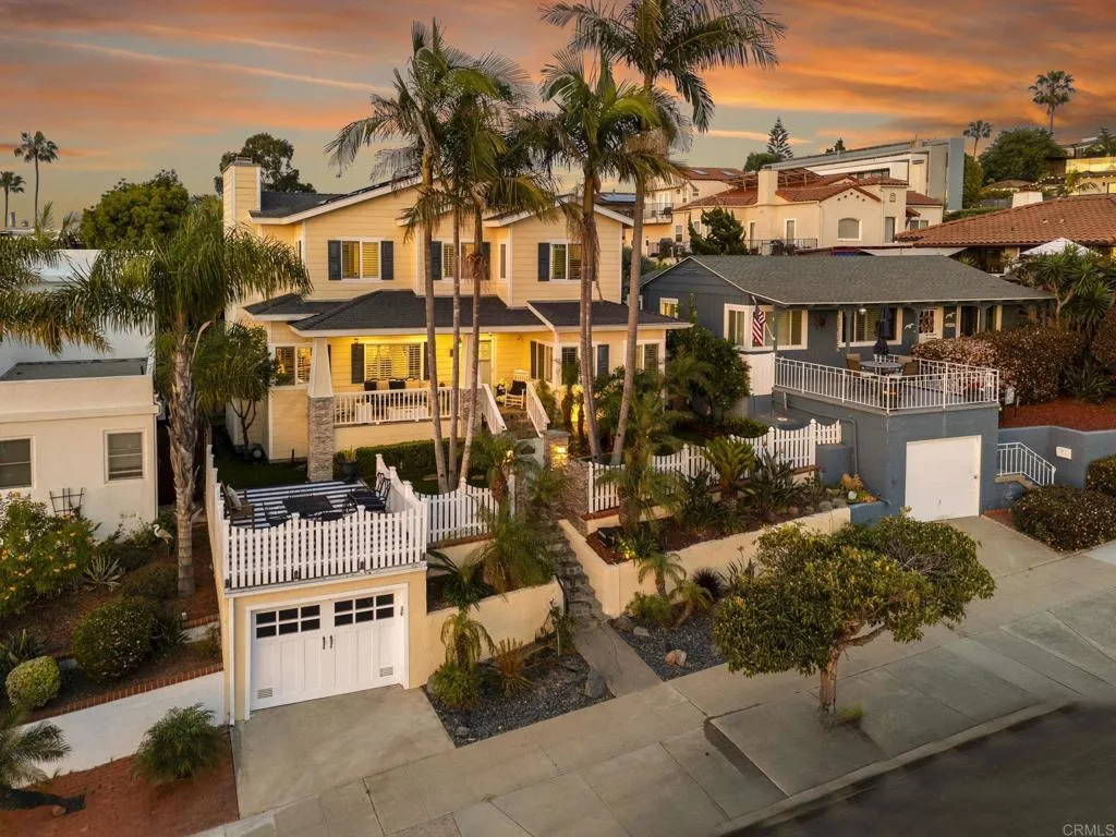Experience coastal luxury perched overlooking the Pacific Ocean from your two beautifully designed homes. The front home features approximately 2,358 sq. ft., boasting four bedrooms and three bathrooms with a flexible floor plan ideal for multi-generational living or work-from-home flexibility. Upstairs, the expansive primary suite offers serenity and refined comfort, complete with a soaking tub, steam shower, dual sinks, abundant bespoke storage abounds, two primary closets, a dedicated shoe closet, and more storage cabinetry. A bonus office/bedroom sits nearby, creating the perfect retreat for relaxation or productivity or use it as a bedroom. All with ocean views! The main level highlights two bedrooms and two baths, a cozy formal living room, a spacious great room, and a recently remodeled chef’s kitchen equipped with a GE Profile column refrigerator and freezer, Viking range and hood, marble countertops, double-drawer Fisher & Paykel dishwasher, and 25-lb. ice maker. There's even a trash compactor. Meticulous craftsmanship is evident throughout — from the true inset cabinetry and hidden drawers to the thoughtful appliance garages and designer finishes. Luxury continues outdoors with a saltwater pool and spa surrounded by new turf and 2024 drainage upgrades. A dry bar with dual beverage refrigerators in the great room and a full laundry room open directly to this resort-style space. Three gas fireplaces—including one at the foot of the primary bed—add warmth and ambiance throughout the home. The front home is powered by 40 solar panels (PPA approx. $0.20/kWh, transferrable) is served by private parking in a two-car garage, plus an additional one-car garage. Completely separate and private from the front house is a rental over the garage. At the rear of the property, on the alley, is a separate two-bedroom, one-bath second home (approx. 899 sq. ft.) above a three-car garage, currently leased for $4,395/month. This second home features a newly remodeled bathroom (2025) and refreshed kitchen (2024) with new counters, sink and more. Updated garages include brand-new epoxy floors, slat walls, stainless sinks, and custom storage, with an EV charger serving the main residence. Additional highlights include a movie/playroom beneath the main home, ideal for guests or family entertainment, and an ocean-view deck above the front garage showcasing stunning sunsets. Recent upgrades include a 2025 water heater with recirculating system, as well as a whole-home water softener and filtration system. This is a smart home with wifi controls of lighting, the pool, heating, video, door locks, appliances and more! Some sprinklers out front on a drip system, but low water usage with turf and low water usage plants. This exceptional dual-home property combines craftsmanship, design, and effortless coastal living — a rare opportunity in Ocean Beach.