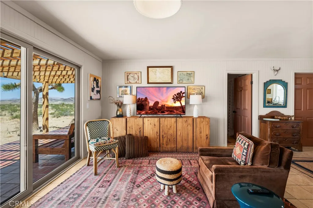 Tucked away on five fully fenced acres in the heart of Landers, this special desert retreat offers the kind of peace and openness that’s getting harder to find. The two-bedroom home (plus a bonus room) feels like your own private hideaway, surrounded by wide-open skies, quiet mornings, and miles of untouched land right outside your gate. One of the most remarkable features is the direct access to government-owned land, meaning your views and sense of space are protected forever. From here, you can hike Goat Mountain, wander out toward the legendary Giant Rock, or simply step outside and explore the high desert at your own pace. Just down the road, the Integratron offers world-famous sound baths and a uniquely calming escape—close enough to enjoy, yet far enough to keep your home blissfully quiet. The home itself invites you to slow down. Mornings are best spent watching the sunrise from the Saltillo-tiled patio, coffee in hand. Evenings call for sunset views from the brand-new viewing deck, followed by stargazing from the spa under some of the darkest skies in the area. A welcoming front porch is perfect for greeting friends, while the hidden back porch feels like a private sanctuary overlooking endless desert wilderness. Originally built in 1958 and thoughtfully expanded over time, the home has been recently updated with modern touches while keeping its desert charm. The layout offers flexibility and comfort, whether you’re hosting guests, working remotely, or enjoying the solitude that makes Landers so special. The property is being offered fully furnished and has a strong history as a successful short-term rental, making it an easy turnkey option for an investor or weekend escape. Whether you’re searching for a full-time desert home, a creative retreat, or an income-producing getaway, this property captures the magic of Landers living—quiet, expansive, and deeply connected to the land.