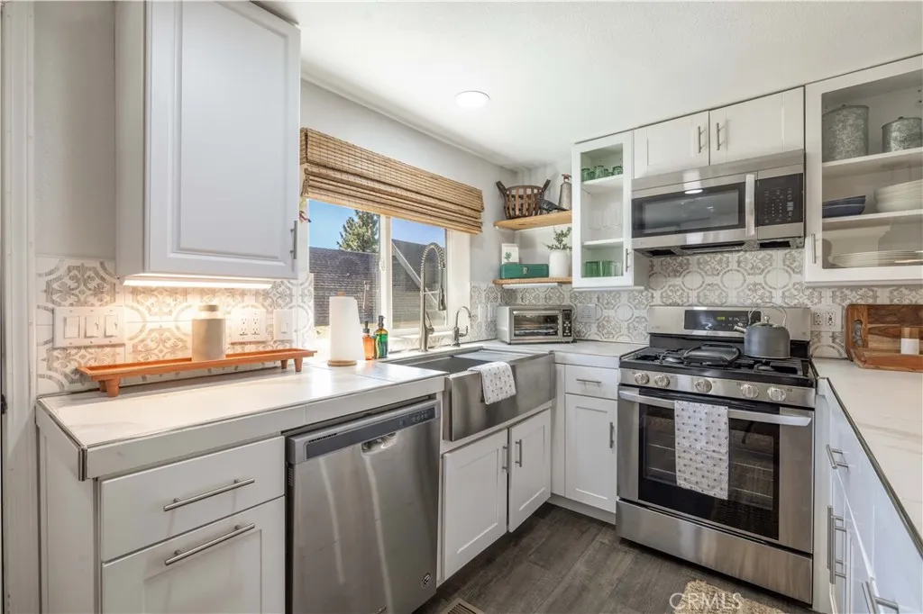 This beautifully updated 2-bedroom, 1-bath home combines modern comfort with mountain charm. Nestled in a peaceful setting with partial lake views and mountain scenery, it offers 690 square feet of thoughtfully designed living space. Inside, the open floor plan features new hardwood floors, a modern kitchen with sleek countertops, updated appliances, and ample cabinetry. Both bedrooms are light-filled and comfortable, while the remodeled bathroom showcases contemporary fixtures and a clean, spa-like feel. A freshly paved driveway leads to the garage, and the new deck is the perfect spot to enjoy morning coffee or evening sunsets overlooking Big Bear Lake. Whether you’re seeking a cozy getaway or a full-time mountain retreat, this home delivers style, function, and a serene lifestyle in one of California’s most picturesque destinations.