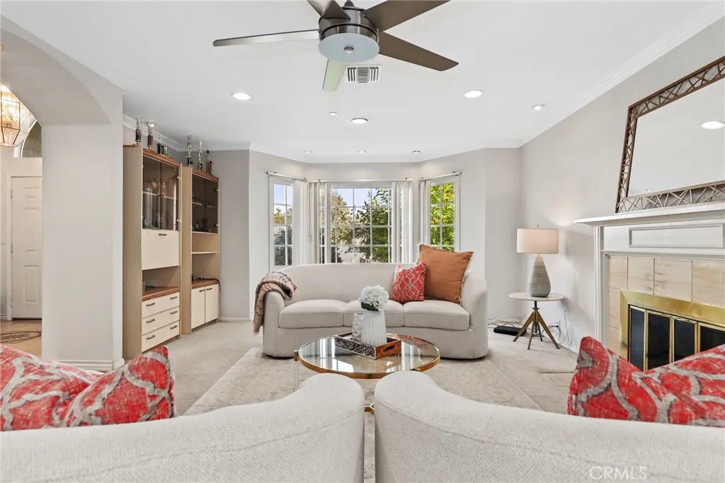 Spacious 6-bedroom home with dual primary suites, paid solar, mountain views, and Arcadia schools! As you enter through the double doors, you’ll be greeted by a formal entry with high ceilings, a stunning marble foyer with a custom medallion and a very welcoming feeling. The large living room features cozy carpet, fireplace, and recessed lighting—perfect for relaxing or entertaining. A formal dining room for hosting large gatherings. Brand new sliding glass doors help keep things quiet and energy efficient. The custom kitchen is a chef’s dream, with an eat-in island, dining area, GE appliances, a single oven with microwave above, trash compactor, tile flooring, and plenty of storage. The kitchen sink has its own water filtration system. This home offers real hardwood and carpet flooring, ceiling fans in all rooms, built-in speakers, and a security system with a front yard camera for peace of mind. It also has a paid-off solar system, a tankless water heater, and dual-zoned HVAC...each bedroom has its own temperature control for convenience. There are three bedrooms downstairs, including a primary bedroom with a remodeled Jacuzzi bath. Two more remodeled bathrooms are also on the main floor. Upstairs you’ll find three additional bedrooms, including a second primary bedroom with another remodeled Jacuzzi bath, and a hall bath. The upstairs primary bedroom also offers a balcony to enjoy the gorgeous view of the mountains. The inside laundry room includes the washer and dryer (watch your step when entering), and the home features an interior fire sprinkler system for added safety. Outside, enjoy the backyard oasis with a deck, custom pavered patio, artificial turf, and lush landscaping—perfect for low-maintenance outdoor living. Award winning Arcadia Schools and a great location - this beautiful home won't last!