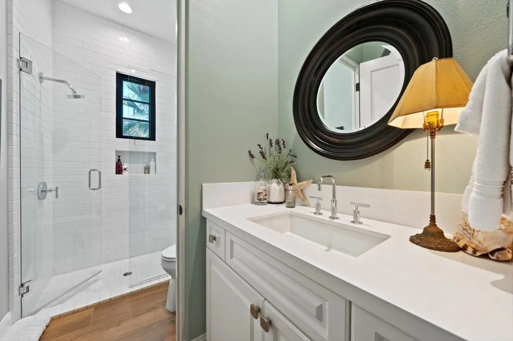 Experience refined elegance in this breathtaking residence, perfectly situated along the Rees Jones designed golf course with rare double fairway views and unmatched privacy. Blending timeless architecture with exquisite custom craftsmanship, this home offers a lifestyle of luxury and comfort. Enter through the enchanting courtyard highlighted by an authentic French fountain imported from Provence, and discover expansive interiors with soaring ceilings, rich baseboard moldings, and designer touches throughout. The gourmet kitchen is a showpiece, featuring a striking Texas Lightsmith custom range hood, Sub Zero refrigeration, Wolf appliances, and hand-crafted cabinetry. The living room centers around a dramatic custom fireplace mantle and a reclaimed wood media cabinet by master artisan Fernando, while a glass-enclosed Vintage Cellars wine room provides the perfect showcase for your collection. The spa-inspired primary suite boasts natural quartz counters, elegant designer sconces, and a freestanding soaking tub, creating a tranquil retreat. Modern luxuries include an 85'' Samsung QLED Smart TV, mounted televisions in the guest suite and patio, and full garage cabinetry with workbenches and AC unit. Outdoors, indulge in resort-style living with a sparkling pool and spa, cascading water features, a cozy fire pit lounge, and a built-in BBQ. Illuminated by Bevolo Williamsburg copper lanterns, this residence is as captivating by day as it is at night. A rare opportunity to own a home that embodies sophistication, comfort, and architectural artistry. Come live the life you've always imagined!