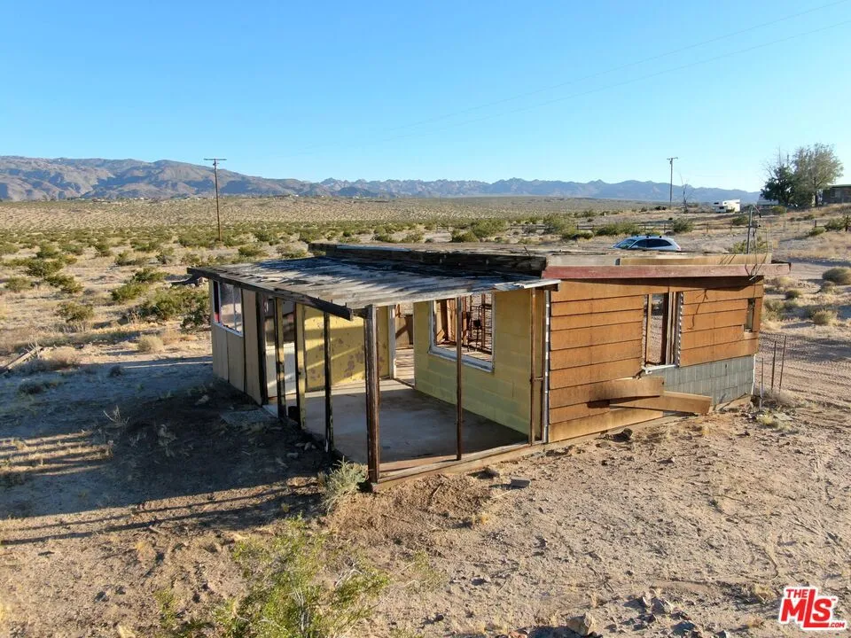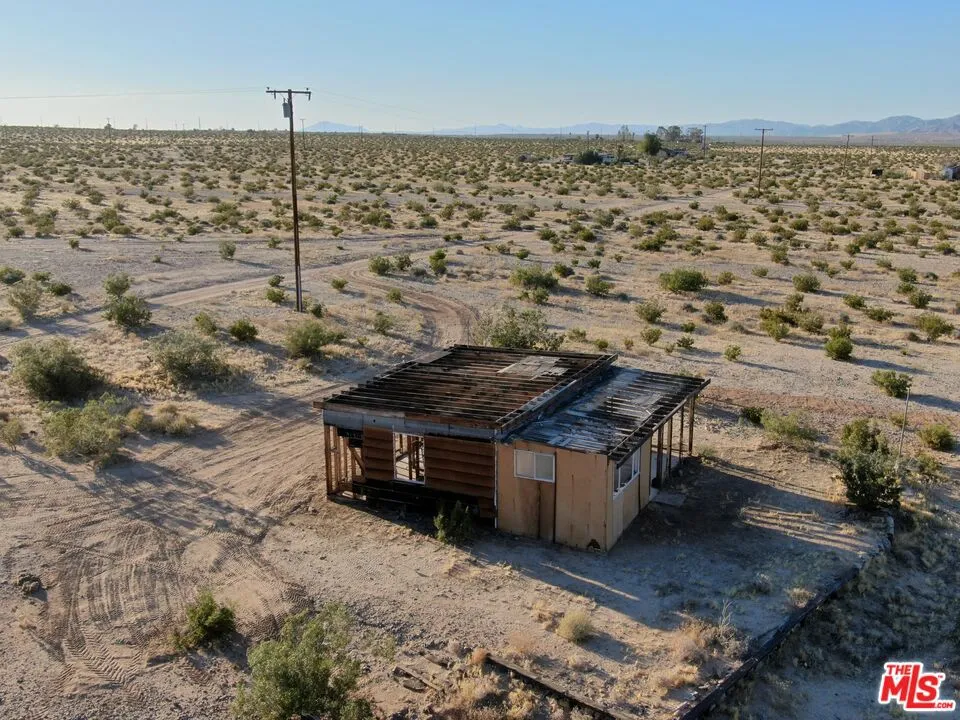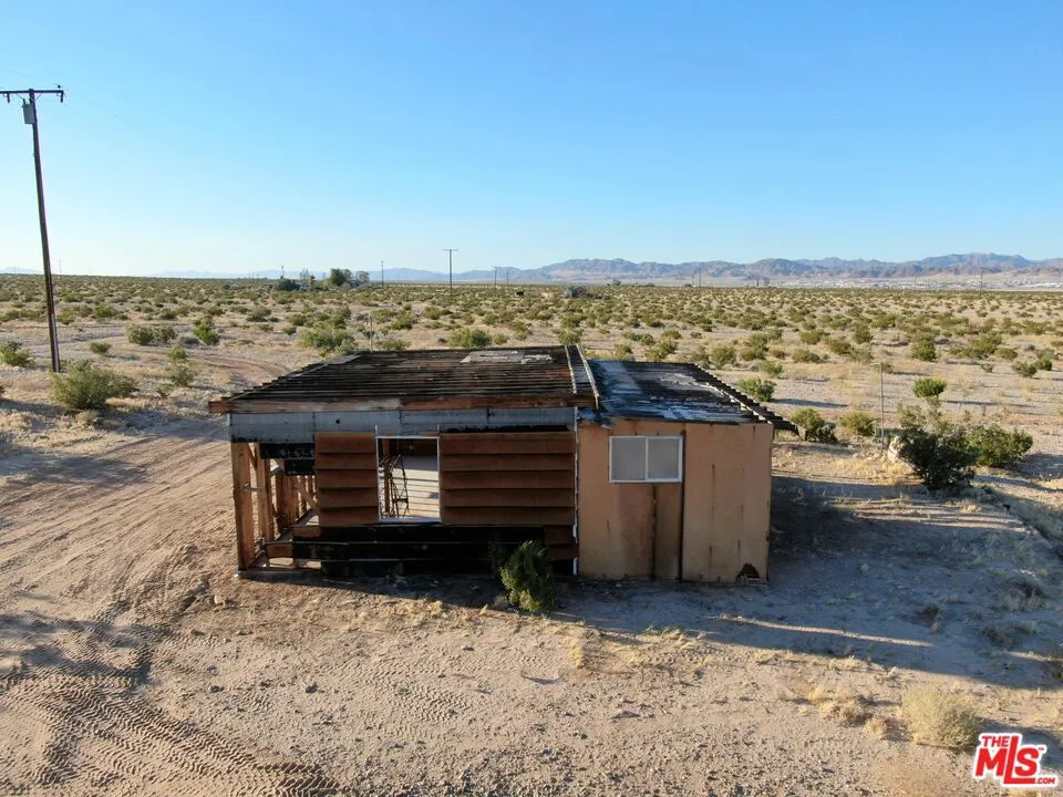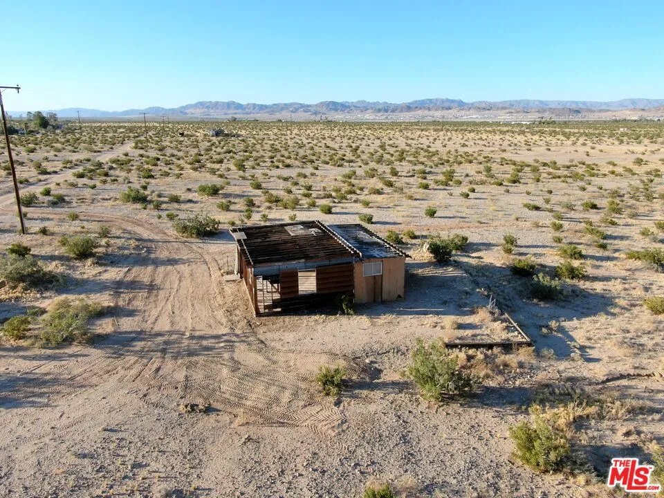 Incredible opportunity to own a 5-acre bluff lot in the highly desirable and fast-developing Desert Heights area, perfectly situated between Joshua Tree and downtown Twentynine Palms. This elevated property offers sweeping views of the Bullion, Copper, and Little San Bernardino Mountains, and is just minutes from Indian Cove and the Joshua Tree National Park entrance. The lot includes a water meter already installed and power is easily accessible via a utility pole located directly adjacent to the property, with connection available. An existing homestead cabin sits on a slab foundation and, while currently uninhabitable, it offers a starting point for redevelopment. A final inspection completed in 2020 confirms that new plans are required to rebuild or remodel the structure. This sale includes a professionally drafted floor plan and a permit-ready construction package, along with high-quality renderings for a modern 2-bedroom, 1-bathroom, 600 square foot cabin. With essential infrastructure in place and development documents included, this property presents a rare opportunity for a flip, a new build, or a high-potential short-term rental investment in a premier high desert location.