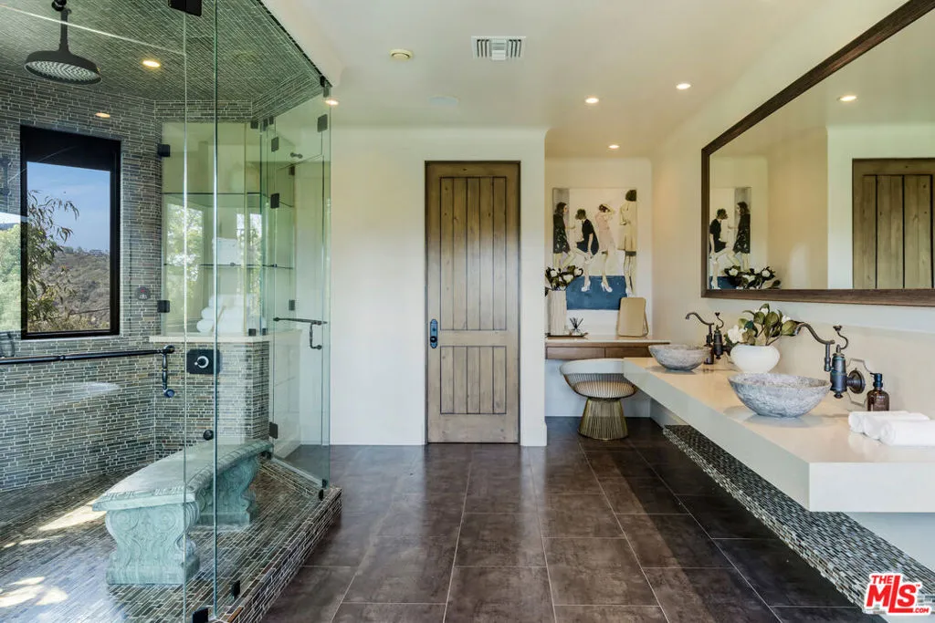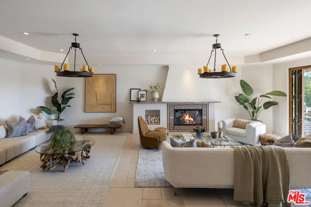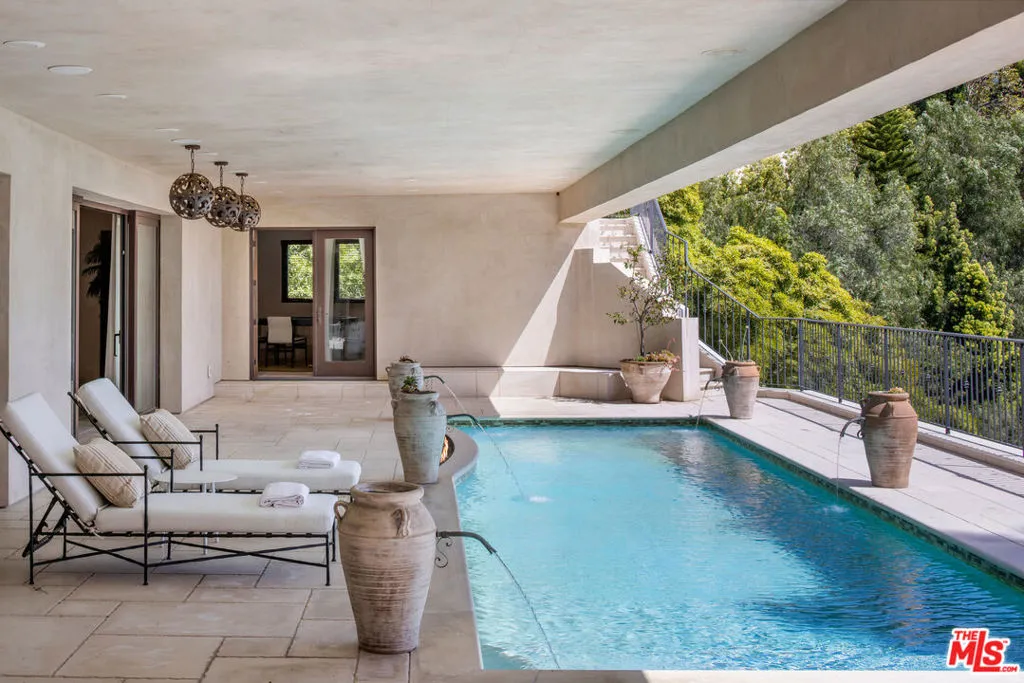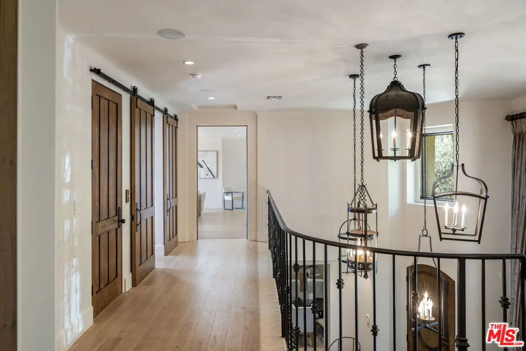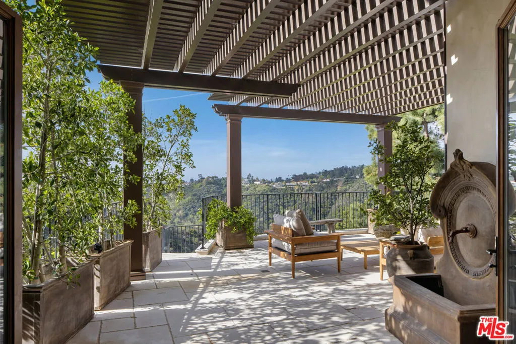 A stunning Tuscan-inspired estate, nestled in upper Bel-Air, across three levels with breathtaking canyon views and peekaboo ocean views. This 6-bedroom villa features a stunning two-story grand foyer, limestone floors, and timeless architectural details throughout. An elegant private elevator connects the three main floors, leading to a refined home office and gym, each with its own half bathroom. Expansive living spaces throughout the home are ideal for entertaining, indoors or outside. The chef's kitchen opens to the outdoor dining and a full outdoor kitchen. Warm stone textures, arched doorways, and custom woodwork evoke the romance of the Italian countryside. The three-car garage offers ample space, while lush outdoor terraces invite you to relax and unwind.