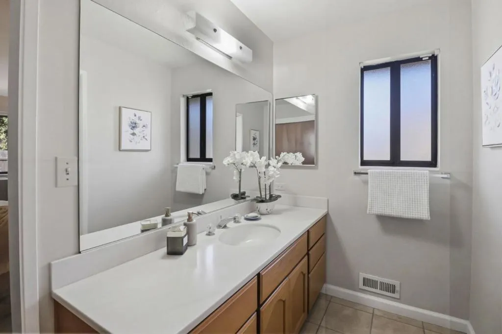 Wonderful South Palo Alto location. In the district of great schools, including Gunn High School. Close by Mitchell Park/Library, the Ball Park, many churches, shops, medical services and restaurants. Lovely tree-lined street in a desirable neighborhood. Dining room, living room, family room, fireplace. Three bedrooms and three bathrooms, plus an upstairs loft area for use as a bedroom or other. The back bedroom and bathroom can be closed off and have a separate entrance. Lots of storage, built-ins, and a large dedicated laundry room. Mostly hardwood floors throughout the home, and almost all on a single level. Glassed in courtyard off of the dining and family rooms. Large 2-car garage has a shop bench and storage cabinets. The empty lot next door adds additional privacy. The lot is not for sale or included in the purchase of this home. Attractive pavers line the driveway.