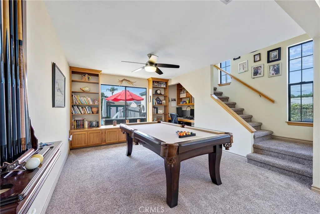 What an incredible floorplan! This wonderful detached home boasts: 4 bedrooms + Pool table room, 3 Baths and approx. 2,304 square feet. The home is well maintained throughout. First floor: 3 bedrooms. 2 bathrooms. Living room. Terrific kitchen. Pool table room which also has space for your in-home office. A separate room that can be used as a dining room or family room. Laundry closet. Second floor: HUGE primary suite with soaring ceiling and large private bath. Enjoy the pool that is surrounded by a deck/sitting area. Other features: Central A/C, Ceiling fans, Built-ins and a tankless water heater. Very long gated driveway that can fit multiple cars. Separate shed in the backyard. 2 car garage with ample storage space on the second level. Also included: Refrigerator, dryer, washer, water softener, pool supplies, pool table, Termite Clearance and Home Warranty. A home with this many features does not come around often; Come take a look today!