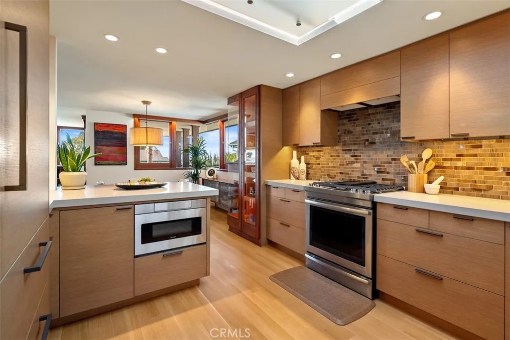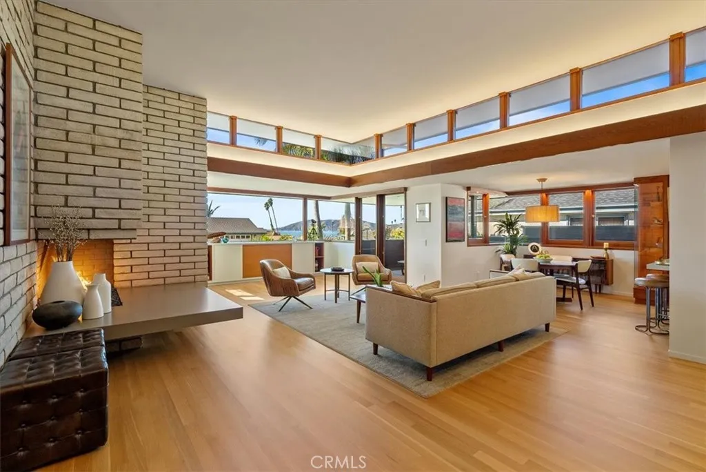 Recently repositioned to reflect today’s market, this architecturally distinctive Mid-Century Revival presents an exceptional opportunity to capture sweeping upper-level ocean views. Nestled in the coveted Sunset Palisades of Shell Beach, the home offers an elevated yet relaxed coastal lifestyle shaped by light, flow, and seamless indoor–outdoor living. Thoughtfully renovated over the past decade, it preserves its original character while elevating every element for modern comfort and ease. Beyond dramatic 12-foot double entry doors, the 2,245 sq ft interior unfolds with calm intention. Rift-sawn white oak floors, clear-cut cedar and Douglas fir millwork, and custom grain-matched cabinetry create a warm, cohesive design language throughout. Original mitered glass windows frame the coastline and fill the main living spaces with natural light. The living and den areas balance form and function with bespoke TV lift cabinetry and walnut-veneered built-ins that discreetly integrate technology. The kitchen is equally considered, featuring white oak cabinetry, Bosch, JennAir, and Sub-Zero appliances, Wa-kei Waiko Japanese tile, Kiesebohmer storage systems, and a skylight topped with a custom 3form panel that provides soft ambient light. Upstairs, the primary suite is a private retreat with its own ocean-view balcony and panoramic vistas stretching south from Point Sal to Avila Bay. Caseta by Lutron lighting, a floating dual vanity, poured concrete countertop, and Hansgrohe fixtures define the spa-inspired ensuite. The second bedroom includes an ensuite bath, while a third bedroom—currently styled as an office—offers flexibility with custom cabinetry and generous storage. Outdoor living is thoughtfully layered across levels. The lower deck functions as an extension of the home, ideal for gathering, dining, and enjoying the ocean breeze. The backyard entertaining area features specialty concrete floating terraces, a fireplace with custom concrete hearth, integrated seating, a Lynx BBQ, a cantilevered bar, and rare 1960s Peill & Putzler pendant lighting beneath a trellis. Mature landscaping, including King palms and producing Hass avocado trees, enhances privacy and tranquility. A side yard includes a detached storage shed with potential for a future spa and outdoor shower. Moments from beaches, parks, and the charm of Shell Beach, 130 Hermosa Drive is designed for living—where architecture, light, and coastal perspective align.