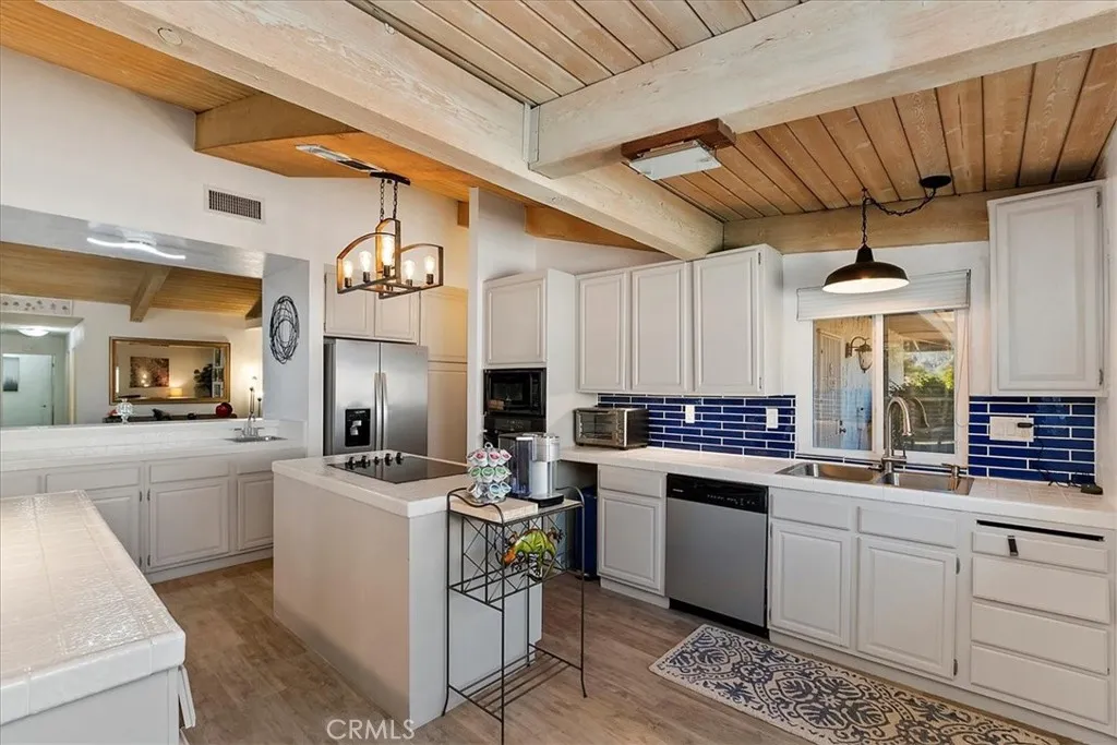 Offered long term, (Call for seasonal rates...AVAILABLE for 2027 SEASON) Enjoy resort-style living in this beautifully furnished 3-bedroom, 2-bath home with a private pool and spacious yard, perfectly situated at the end of a quiet cul-de-sac in the desirable La Quinta Country Club Montero Estates. Offering 2,168 square feet of living space, this single-level home welcomes you with an open floor plan, exposed beam vaulted ceilings, and wood-look flooring throughout the main living areas. The great room flows effortlessly into the dining area and remodeled kitchen, featuring crisp white cabinetry, striking blue subway tile backsplash, and stainless steel appliances — ideal for entertaining or relaxing after a day on the golf course. The primary suite offers backyard and pool access, a walk-in closet, and a beautifully updated spa-inspired bathroom with dual sinks, a soaking tub, and a separate glass-enclosed shower. Two guest bedrooms are equally inviting, each thoughtfully furnished for comfort. Step outside to your own private retreat — a sparkling pool and spa, covered patio with outdoor seating, and mature landscaping that offers both beauty and privacy. Just beyond the backyard, pickleball enthusiasts will love having the community court right next door!Located in one of La Quinta’s most sought-after communities, this home is minutes from Old Town La Quinta, dining, golf, shopping, and hiking trails. Available turnkey furnished for seasonal T Experience the best of desert living in a peaceful, elegant setting.