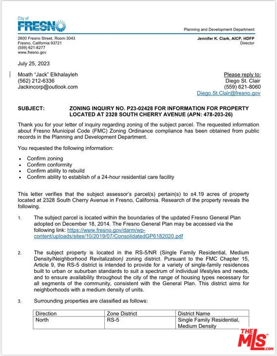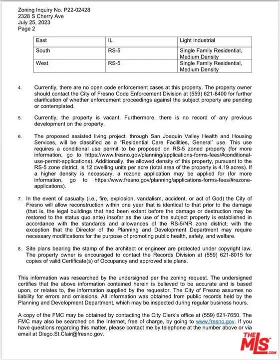 Exceptionally unique opportunity to own and develop a multi-purpose/multi-zone RS-5. +/-4.19 acre parcel of land, perfectly positioned adjacent to the CA-41 and CA-99 offering exceptional visibility for several unique ventures. Nestled right on the border of the vibrant city of Fresno, this property boasts multi residential zoning parcel that's very hard to find. Privacy and security are paramount here, as the property is fully fenced in. We purchased this property in an effort to combat the housing crisis by building a comprehensive assisted living and housing complex to house 250 individual. Whether your vision involves separate housing units, a supportive housing community with over 250 bed, or any future development, this versatile property stands as an ideal canvas for any residential/business project. This piece of land is part of a duplicate project we are currently developing in the cities of Palmdale (LA County) and Bakersfield (Kern County).All three land development projects made possible with similar plans, land use, and size. Please see attached documents. This listing includes complete plans for our 250 bed assisted living facilities and apartments. It cost over 150k to get these plans developed and currently approved in Bakersfield.