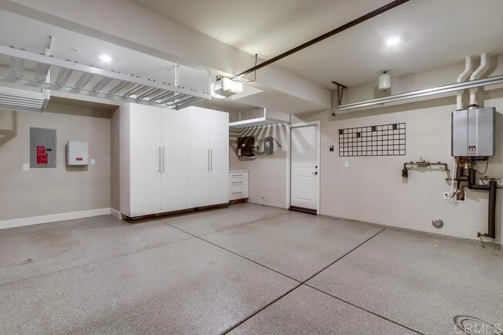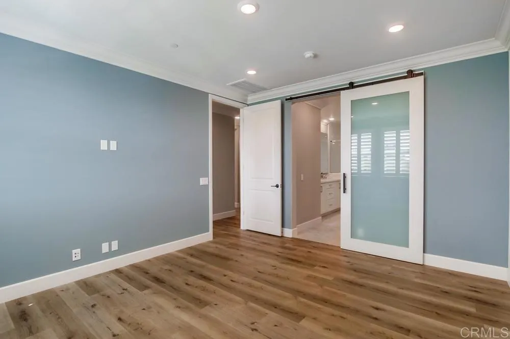 Sunshine abounds throughout this stunning end-of-building Avante Plan 4 residence, where abundant natural light pours in through numerous additional windows and highlights tranquil views of the tree-lined park just across the street. The home is rich in thoughtful, high-end upgrades, beginning with designer kitchen finishes including a Bianco Carrera mosaic marble backsplash, upgraded cabinets and countertops in both the kitchen and baths, and chrome-plated solid brass cabinet and drawer pulls throughout. Adding warmth, quality, and architectural character are Valley Oak flooring, wainscoting, and crown molding throughout, along with custom doors and a private elevator. Additional enhancements include professionally installed designer wallpaper in the first-floor office and each bath, designer bathroom mirrors, custom closets, a solar shade at the dining room balcony door, and white plantation shutters on all windows with remote controls for hard-to-reach areas. Luxury lighting fixtures in the living room, dining room, and kitchen, along with a solar system, further elevate the home’s refined coastal aesthetic. The garage is equally impressive, featuring custom epoxy flooring, storage racks, cabinetry, and drawers, offering exceptional organization and functionality. Located in the heart of Del Sur’s sought-after 55+ Avante community, the home offers 1,787 sq ft of living space, two bedrooms, two and a half baths, a versatile ground-floor office or optional 3rd bedroom, a private elevator, and a two-car garage. The community’s exterior walls and doors have recently been repainted, and the HOA provides groundskeeping and exterior upkeep, allowing for a low-maintenance, lock-and-leave lifestyle. Community amenities include a clubhouse, pool, jacuzzi, gym, lounge, barbecue kitchen, and fire pits. As a Del Sur resident, you’ll also enjoy access to eleven pools, fourteen parks, and miles of manicured hiking trails. With shopping and dining just steps away—and a short drive to San Diego’s spectacular beaches and coastal destinations—this exceptional home is an absolute MUST SEE!