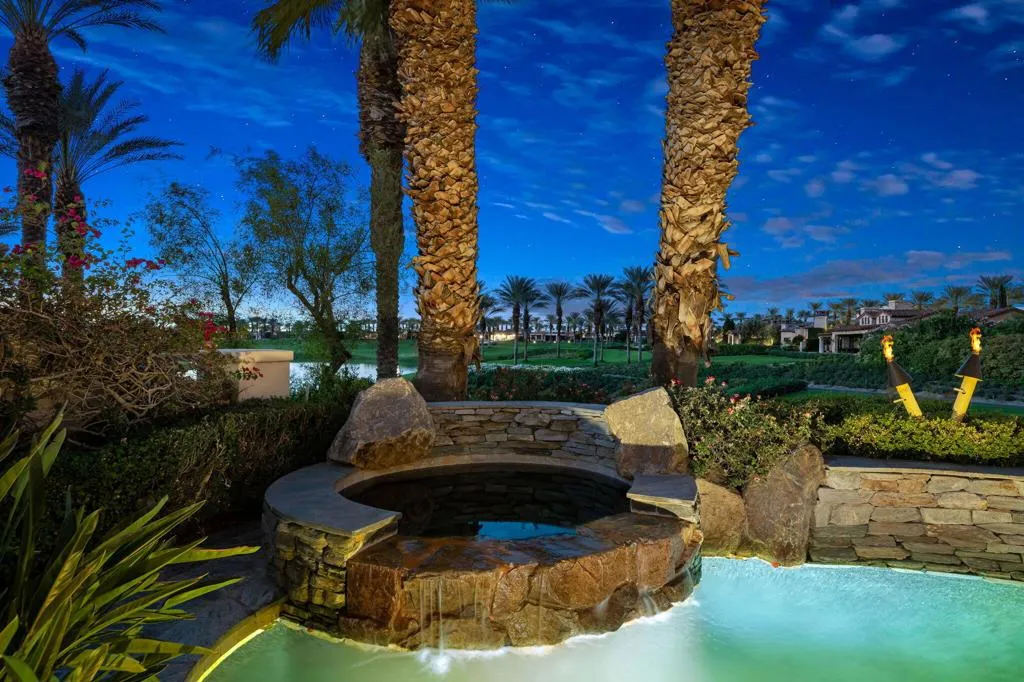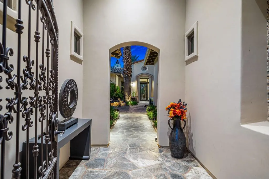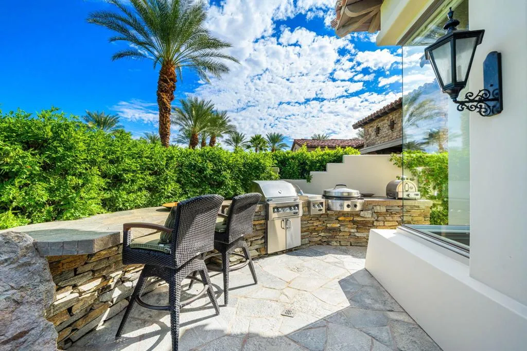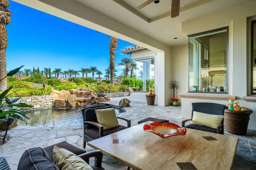 Reduced and priced to sell! This immaculate Toscana Country Club home has it all!It is located on a private cul-de-sac street, offering a serene and private setting with unparalleled views of 3 golf holes on the Jack Nickolas South course, including mountain and lake views, offering stunning sunsets. With approximately 4300 sq. ft of living space, this elegant home consists of an open airy floorpan with the main living area offering 2 separate sitting areas adjoined by a wet bar with corner glass and wrap around seating, and an open formal dining area, is perfect for entertaining.The courtyard has been recently landscaped with flagstone and artificial grass, a private sitting area with fire pit and fountain. As you enter thru the custom iron front entry door, you will see beautiful stone floors, disappearing sliders which look out to the flagstone patio, zero depth entry pool with waterfall and hot tub, outdoor kitchen and with oversized barbecue area with seating. The mature landscaping provides privacy allowing for a beautiful desert oasis with gorgeous views beyond.The gourmet kitchen is a chefs dream, with a large island with breakfast bar, double oven/cooktop, paneled refrigerator, beautiful cabinetry with tons of storage and walk in pantry. The adjacent dining room with stone wall is a wonderful touch for larger groups.The movie theatre room with soundproof walls and 8 leather movie chairs, is the place where all with gather to watch movies, sporting events and perfect for binging your favorite shows! Retire to the spacious private primary suite with a cozy reading area, fireplace, ensuite bath with an enormous soaking tub with fireplace, separate vanities, large walk in shower and 2 walk in closets.The separate 2 room casita offers your guests a private retreat with sitting area, desk and kitchenette with refrigerated drawers and built in cabinets. The bedroom has a spacious ensuite bath with double sinks and walk in shower. This gorgeous classic Toscana home has been meticulously maintained, beautifully decorated and is being offered furnished and it can be yours to enjoy this season!