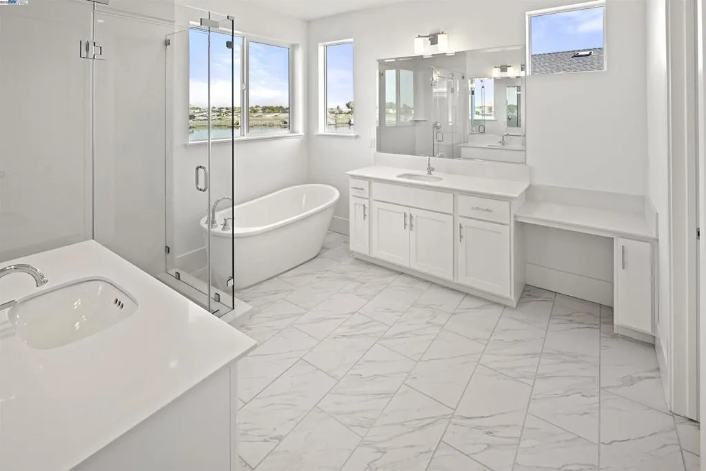 Views abound from both floors of the Indigo plan. Whether from the upstairs deck, just off of the master suite, the covered outdoor living room, or the numerous windows throughout, you can't miss the beauty of waterfront living. This four-bedroom plan has an optional den for those working from home and the main floor flows effortlessly from the kitchen, to the dining room, to the great room. There is also plenty of storage with the walk-in pantry and under stair closet. Upstairs both bathrooms feature dual sinks and the upstairs laundry room with optional sink means fewer trips up and down stairs.