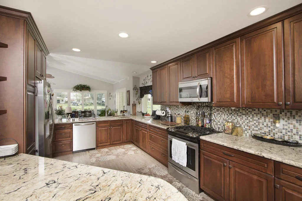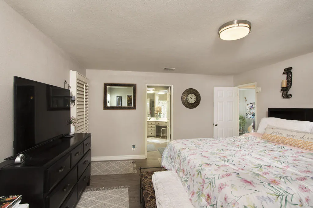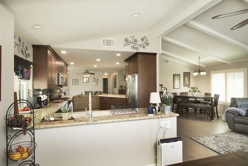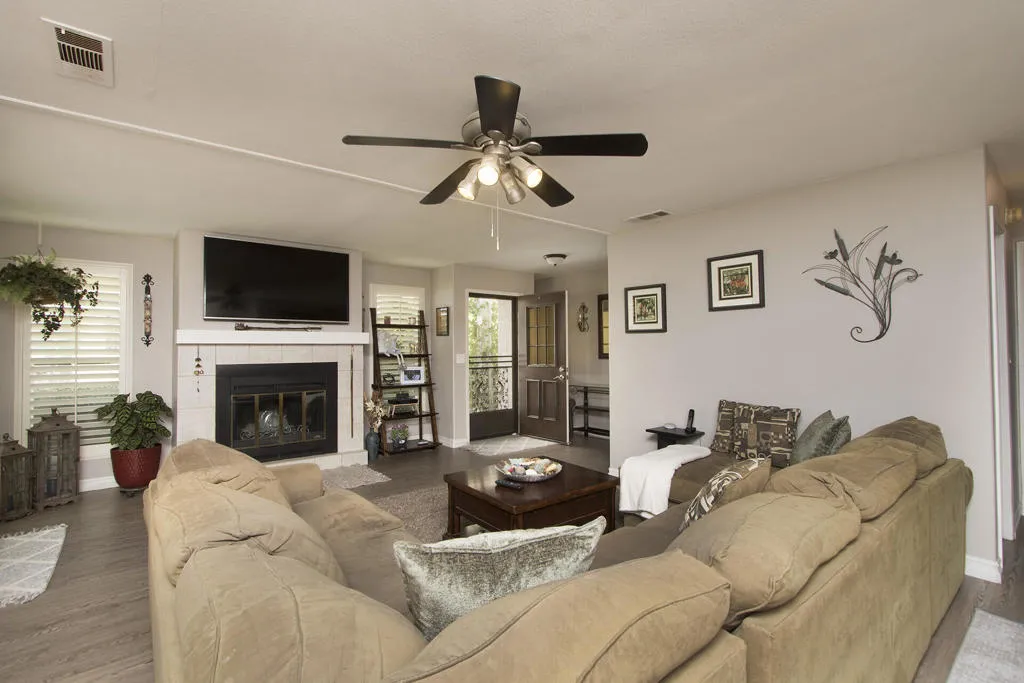 Back on the market; sale fell through. Beautiful remodeled and well-maintained home with stucco exterior offers an expansive views of golf course and mountains from oversized patio. 3 car garage with separate golf cart door facing a driveway that easily holds 2 vehicles. Enter the front door to the living room with a wide open view of the kitchen and adjoining family room on the other side of the kitchen. Two separate dining areas in the family room plus seating at the quartz countertop in the kitchen. Stainless steel appliances are a feature in this sizable kitchen designed for easy meal prep. Laundry room is loaded with storage and leads to the hallway for the guest bedroom and bathroom with the master bedroom/bath situated at the end against the garage wall easily buffering outside noise. Owner upgrades include all vinyl flooring, custom kitchen cabinetry with soft-close doors and new double pane windows and shutters throughout. Ivey Ranch has a par 3 golf course, tennis/pickleball courts, clubhouse, exercise equipment room, and 4 pools w/2 spas.Gated with guard on duty till 3 pm daily.