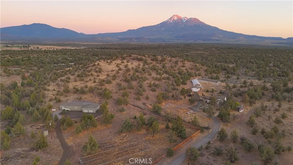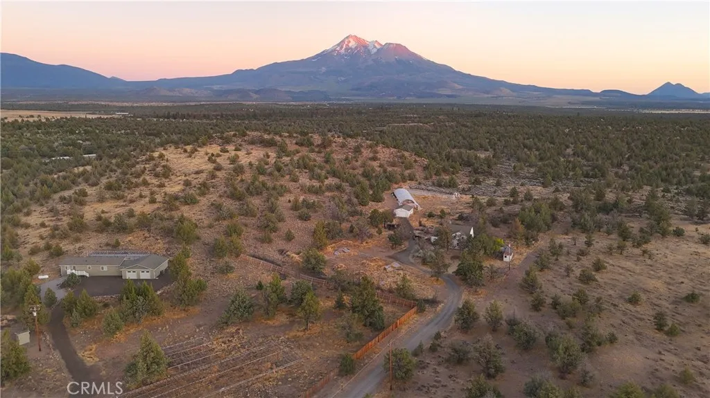 Tucked at the end of a quiet private road, this 1,921 sq ft home offers privacy, space, and stunning Mt. Shasta views. Located in the charming town of Montague, known for its rural beauty and small-town feel, the home features 3 bedrooms and a full bath upstairs with a cozy landing area. Downstairs includes a spacious great room, large kitchen with custom cabinetry, second bath, laundry, and solarium. A converted garage adds a 4th bedroom/bonus room with its own entrance, walk-in closet, and mini-split system. Outside you’ll find a 24' x 36' insulated, heated garage/shop, automated sprinklers, fenced garden, fruit trees, chicken coop, RV parking, and more. A perfect blend of comfort, utility, and scenic surroundings! The accuracy of the information provided is deemed reliable but is not guaranteed, is subject to change and should be independently verified