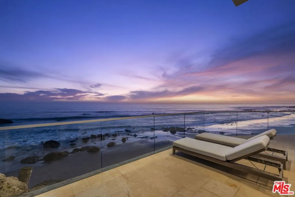 Experience Malibu living at its finest on iconic Malibu Road. This prestigious property, a former celebrity-owned beachfront retreat, is a breathtaking coastal sanctuary offering sweeping ocean views that stretch from Santa Monica and Palos Verdes to Catalina and Point Dume. A dramatic entryway makes a jaw-dropping impression, framed by landscaped front and back courtyards. Towering two-story ceilings and complete privacy elevate the living experience, while expansive outdoor spaces invite both serenity and entertaining. Inside, rich oak hardwood floors flow throughout. The gourmet kitchen stuns with creamy white cabinetry, luxurious finishes, and a layout designed for both beauty and functionality. The oceanfront primary suite is a true retreat with a cozy fireplace, dual walk-in closets, and panoramic views. The spa-like primary bath features a soaking tub, oversized steam shower, and direct ocean views. Upstairs, two guest bedrooms share a dual bathroom, offering both comfort and privacy. Outdoor living is unmatched, with a rare and expansive entertaining area complete with a built-in BBQ and private spa. The main house offers four bedrooms plus an office/den, while a completely separate one-bedroom guest house with its own ocean views sits across the courtyard. This iconic exquisitely designed property is truly one of Malibu's finest.