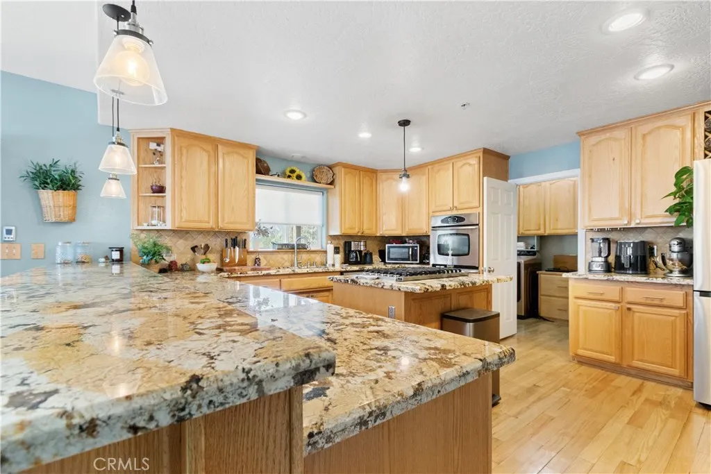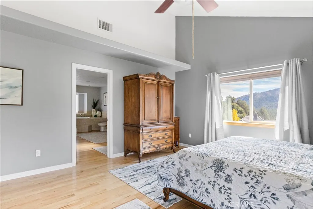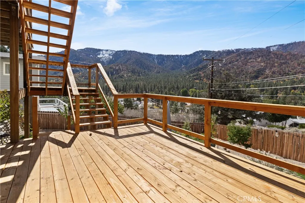 Discover this stunning home on the sunny side of Wrightwood, where the sunlight bathes the property and snow melts quickly away. Nestled on a peaceful cul-de-sac on Apple Vista Drive in the secluded neighborhood located up Rivera Dr. This elevated residence offers breathtaking, unobstructed views of the north facing mountains preserving the snow covered landscape longer than any other part of town. Built in 2007, this spacious 2,631-square-foot home features 3 bedrooms and 3 full bathrooms. The chef’s kitchen is equipped with highend stainless steel appliances, a large countertop burner, granite countertops, and custom cabinetry. Ample storage options include a walk-in pantry and utility room, making organization effortless. The main floor boasts an open-concept dining area and living room, centered around a cozy fireplace. The dining space and kitchen overlook Wrightwood’s majestic mountains, offering a picturesque backdrop. Multiple decks provide perfect spots to enjoy the crisp forest air and scenic views. Upstairs, you'll find all three bedrooms including the luxurious primary suite. The primary bedroom is a true retreat with a large soaking tub, dual sinks, and an expansive glass shower. The walk-in closet offers plenty of space for your wardrobe. Both the primary and secondary bedrooms feature access to the deck’s highest vantage points, perfect for soaking in the natural surroundings. The generously sized bedrooms surpass standard expectations, offering ample comfort and space. Dual air conditioning units ensure year-round comfort, even during the warm summer months. On a 10,048 sq ft lot that has been detailed and design to feel like a relaxing retreat. The lush, fully landscaped front and backyards include a dedicated garden area with a built-in pest deterrent system, ideal for growing your own produce in a protected environment. Additional features include expanded paved parking with RV access along the side of the home, as well as an unfinished basement for extra storage and easy access to plumbing, furnace, ducting, and home water treatment systems. Located within the highly acclaimed Snowline School District, with convenient bus routes nearby, this move-in-ready home is a true gem—an exceptional property in a proud, well-maintained neighborhood. Don’t miss the opportunity to make this remarkable residence your new mountain retreat.