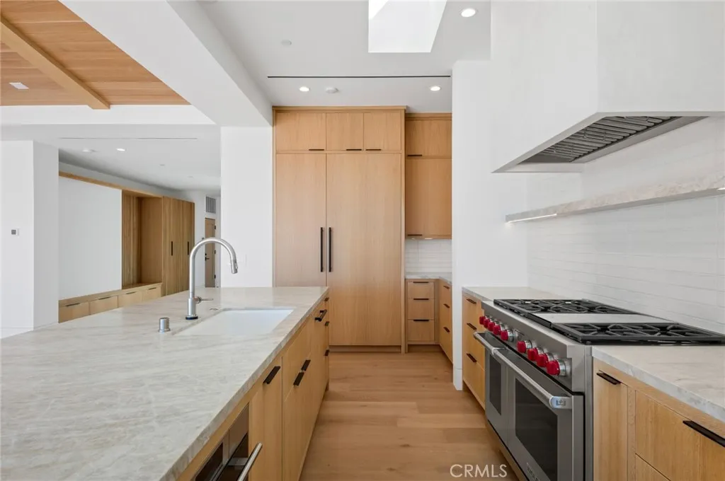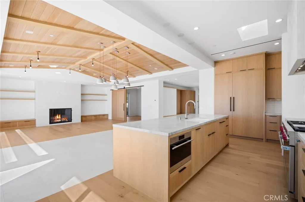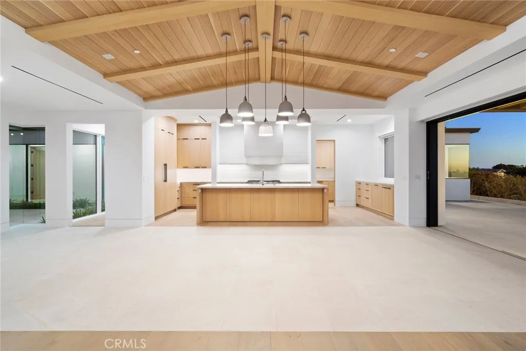 Well-positioned in the sought-after Cameo Highlands community of Corona Del Mar, this newly-built home is absolutely sure to impress. Perched on an ocean-view terrace with spanning ocean horizon, year-round sunsets, & Catalina Island views from the major living spaces, opportunities like this are rare to the market. Designed by highly-acclaimed architect Mark Teale with interiors carefully selected by Raili CA Design, this beyond-desirable home offers several key values: lightly occupied since newly constructed in 2023, a modern, ranch-style floor plan all on one level with no interior steps (4 bedrooms & 4.5 bathrooms), floor-to-ceiling walls of glass with obscured privacy gates in the entry atrium, white oak-beamed / vaulted ceilings and skylights in one generous great room, two extremely high-end kitchens (bonus butler’s kitchen), massive disappearing slider doors - seamless to the generous rear patio with sunset-views over Catalina Island around the fire pit or from the fire-warmed dining, natural materials including a variety of stone, smooth stucco, rustic wood & steel elements, rift-white-oak custom cabinetry, built-ins, doors, ceilings, and stylish tiling throughout. All bedrooms are ensuite, one doubling as a bonus room or home office with custom built-ins. The primary suite features major ocean views from bed, custom window treatments, walk-in closet with custom wardrobe build-out, and a truly amazing primary bathroom with dual vanities, curbless walk-in shower, soaking tub, and private water closet. A dedicated laundry room equipped with newer machines, a solar system for reduced expenses, surround sound, air conditioning, and dual-access to the generous 725 SF 3-car garage, this home is truly dialed-in. Very private on the ocean-view side of the street and no one immediately behind, it's a special place to reside. Cameo Shores just below offers private beach access for the community, direct access to Crystal Cove State Park nearby, neighborhood parks, and one of the most prestigious addresses in all of Corona Del Mar. The cost of ownership far exceeds this opportunity at such an impressive and effectively new home - rare to come by.